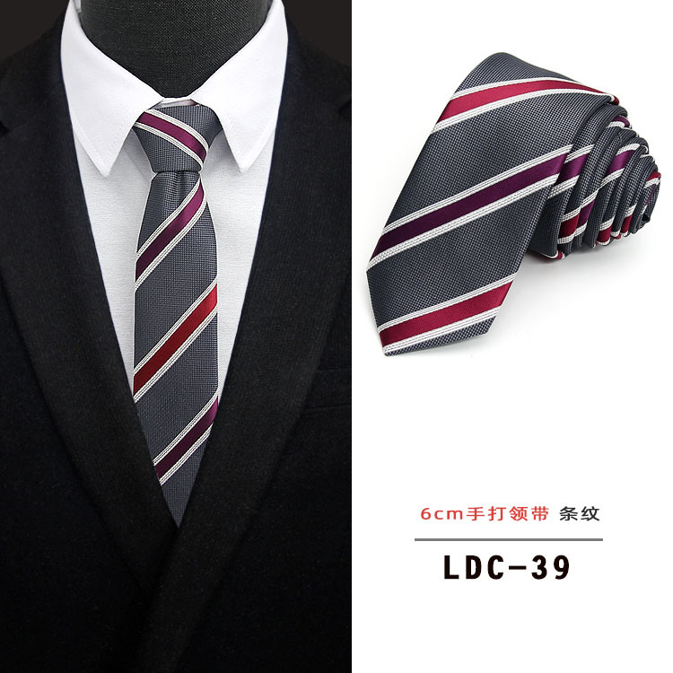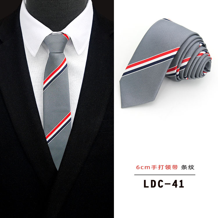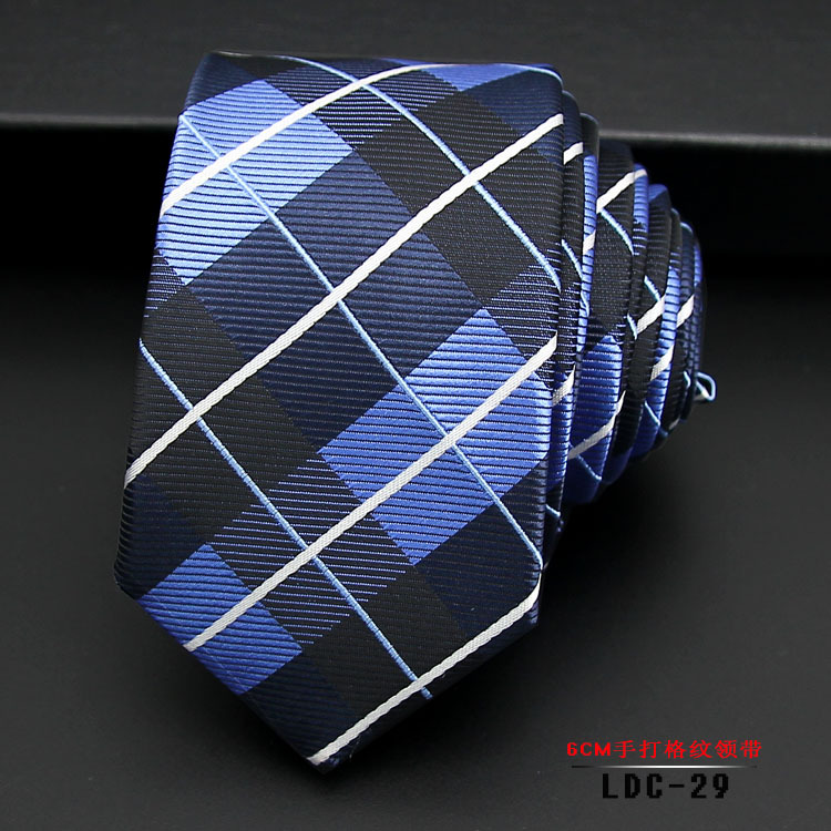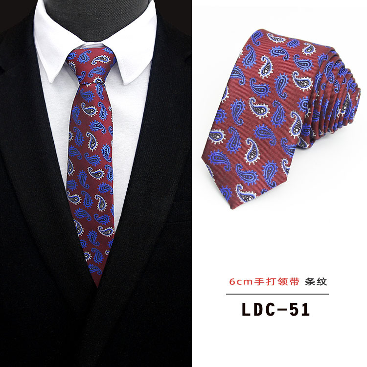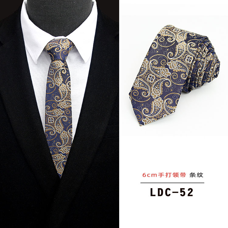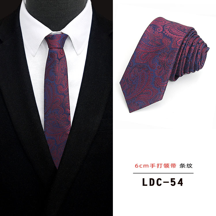 남성용 6CM 폴리에스터 일본 및 한국 신유행 초슬림 체크무늬 꽃무늬 넥타이, 순색 수제 넥타이(재고 있음)스토어 가기
