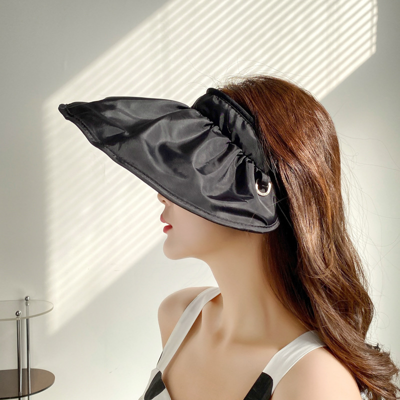 여름 새로운 업그레이드 접이식 자외선 차단제 모자 여행 해변 큰 챙 차양 모자 없음 최고 UV 모자 여성