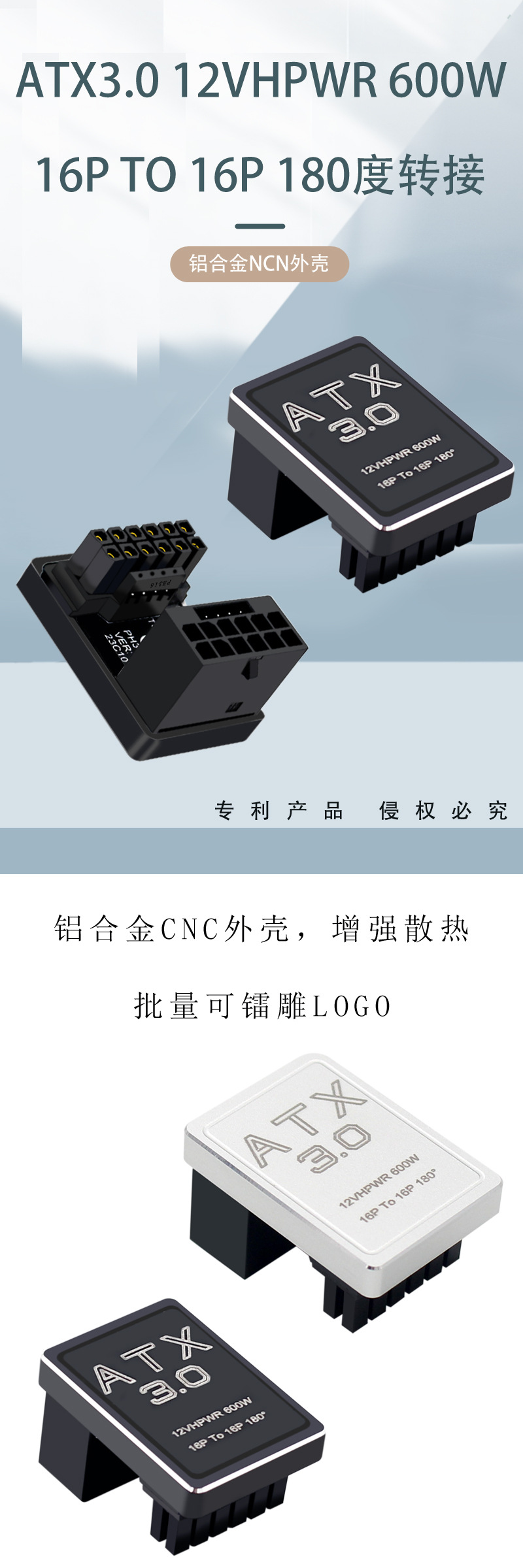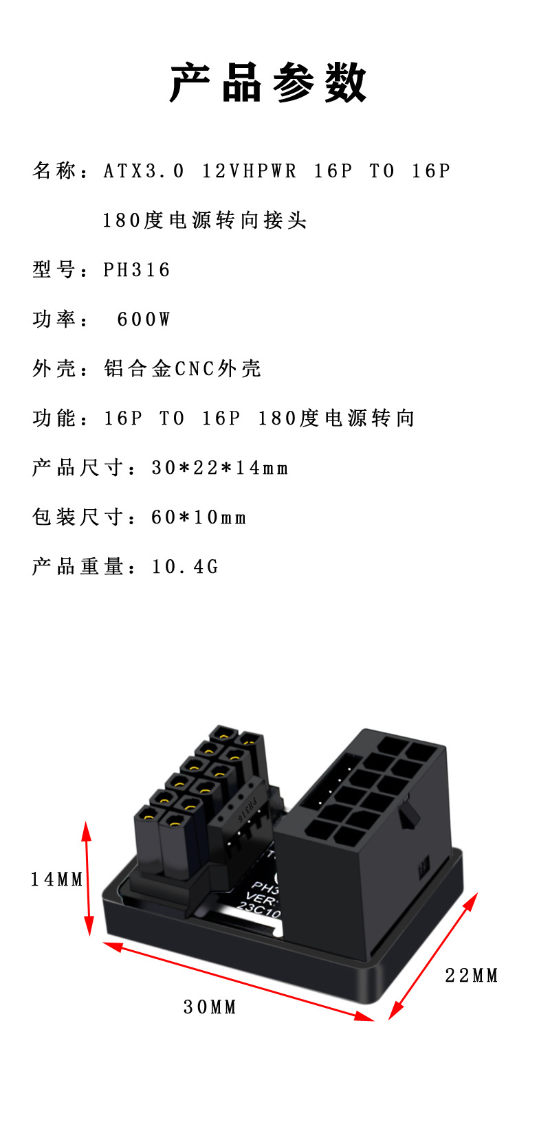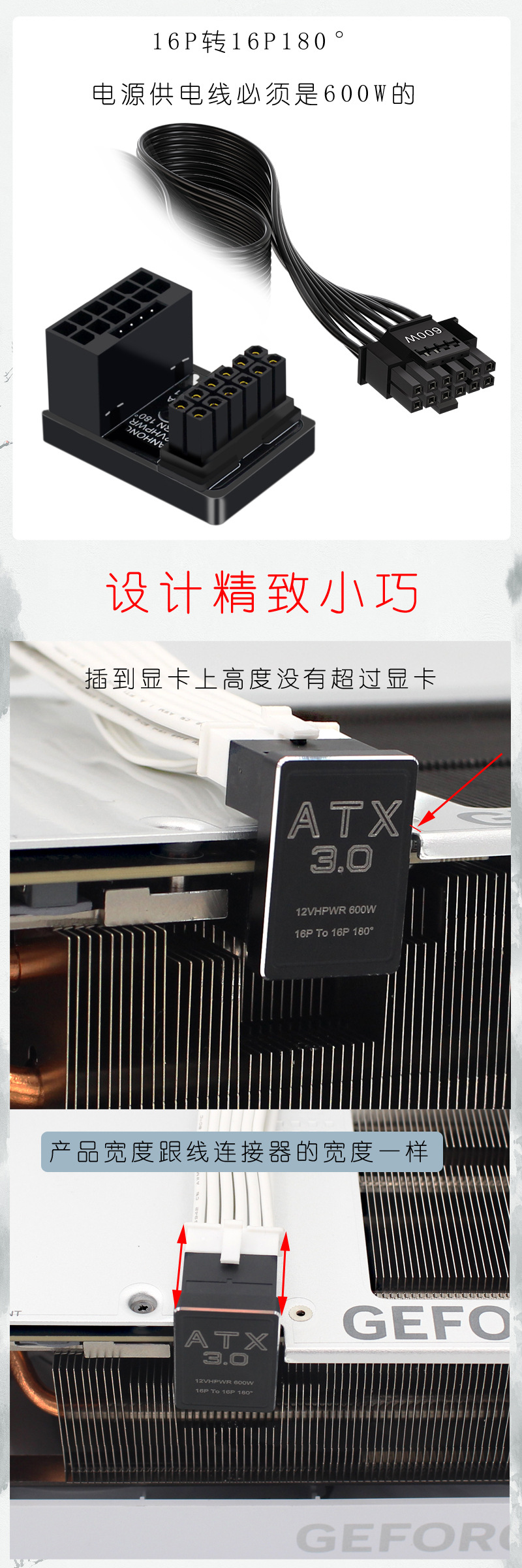 PCIe5.0 그래픽 ATX3.0 전원 공급 장치 12vhpwr 12 4 16p 600W 남성 턴키 180 도 스티어링 헤드