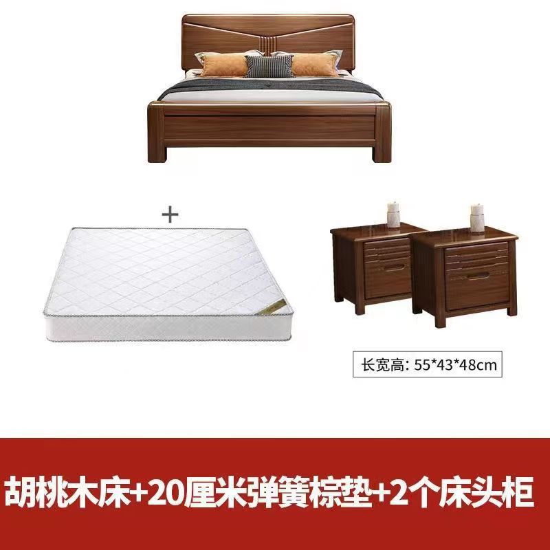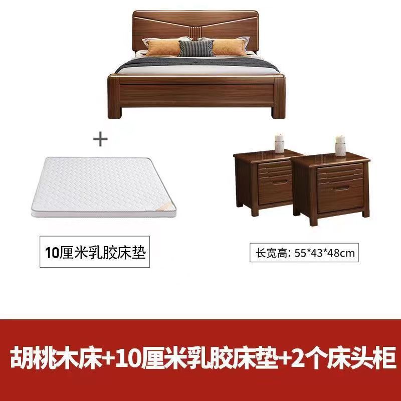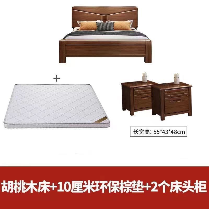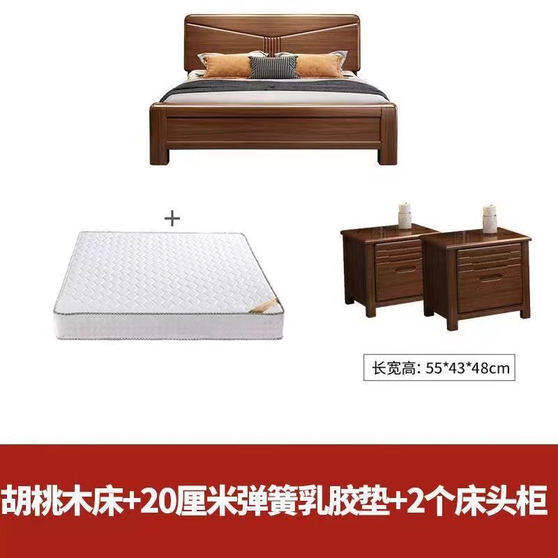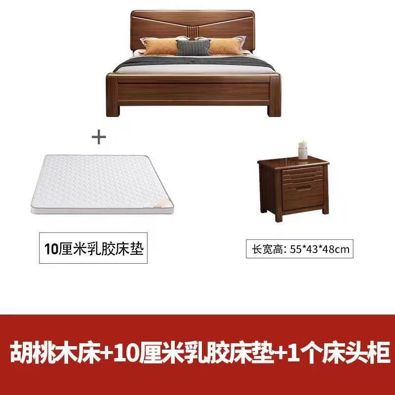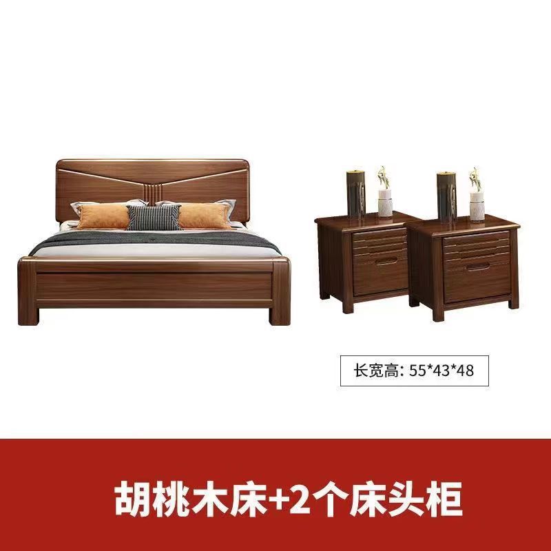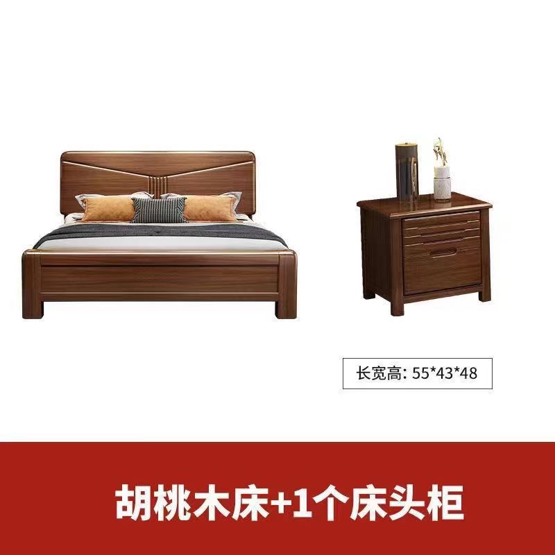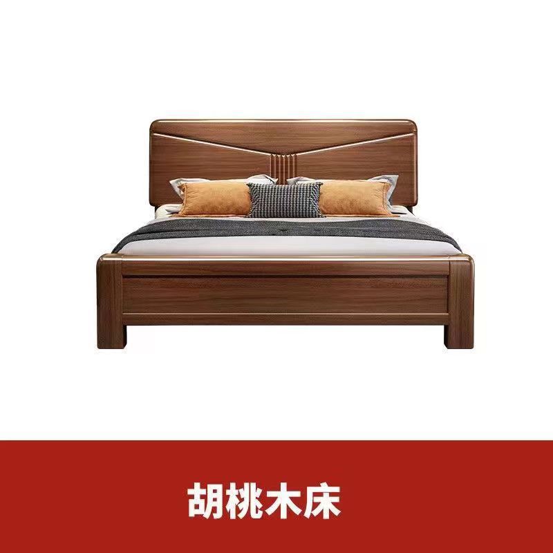 월넛 단단한 나무 침대 1.8 m 마스터 침실 더블 퀸 침대 현대 중국 스타일 1.5 m 작은 아파트 높은 상자 보관 웨딩 침대