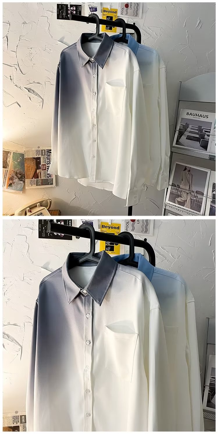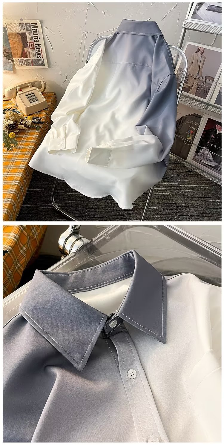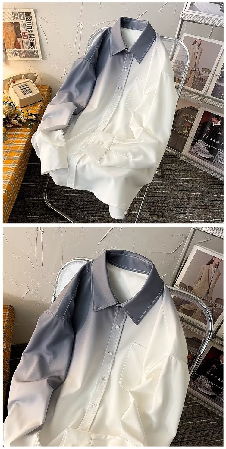 2026 봄/여름 그라데이션 긴팔 셔츠 남성 캐주얼 배색 트렌디 브랜드 멋스러운 일본풍 홍콩풍 프랑스 디자인 셔츠스토어 가기
