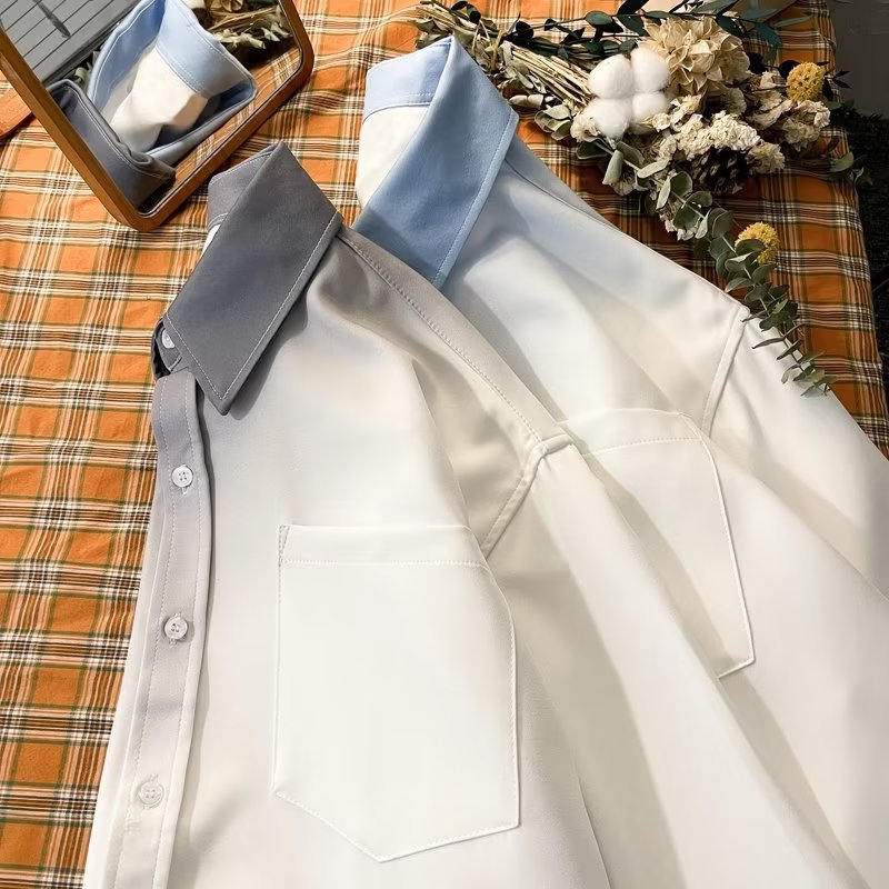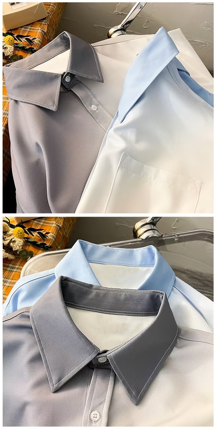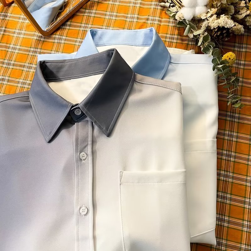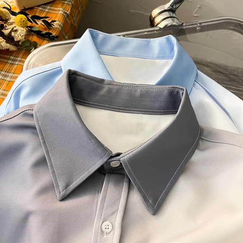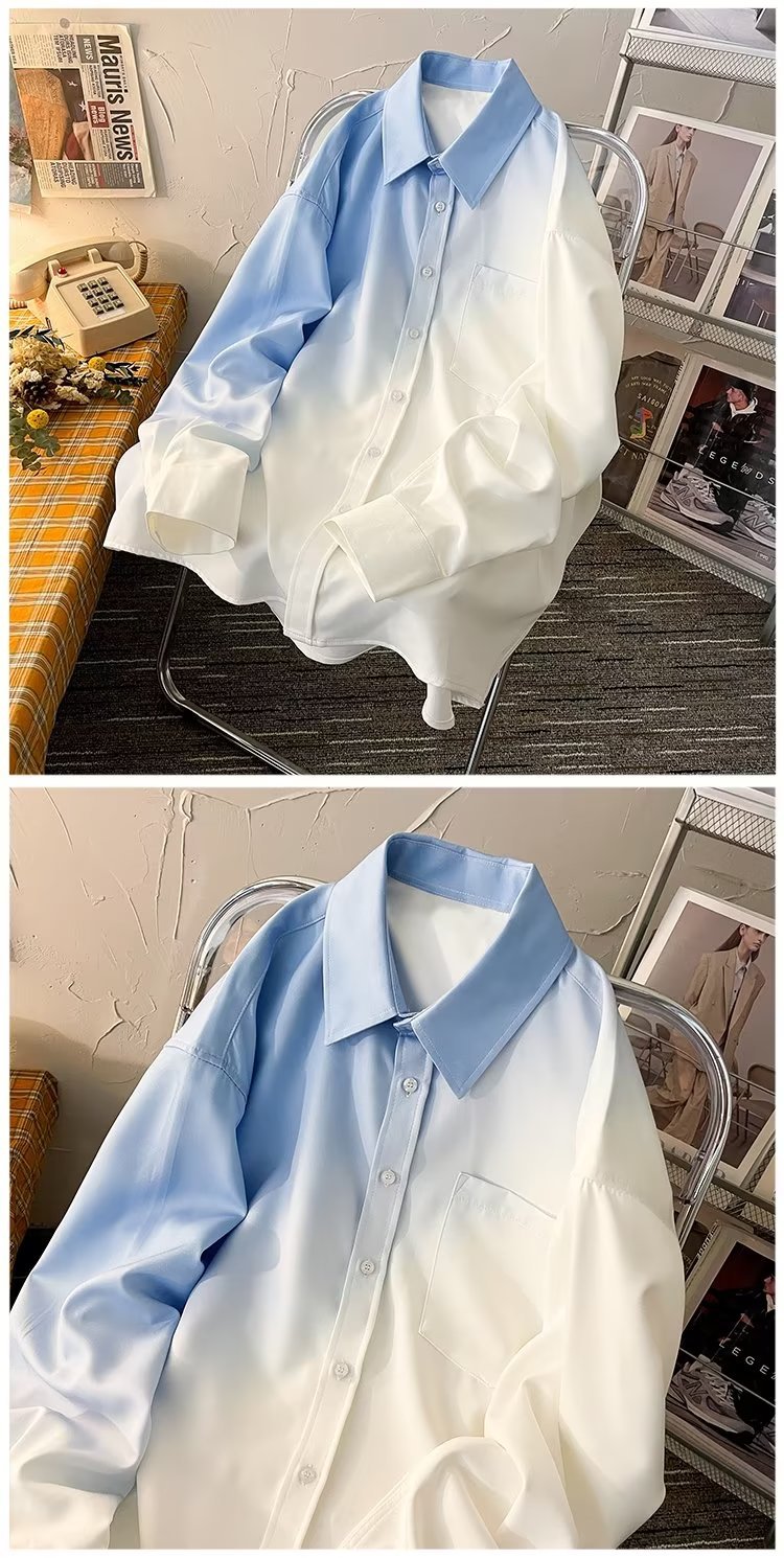 2026 봄/여름 그라데이션 긴팔 셔츠 남성 캐주얼 배색 트렌디 브랜드 멋스러운 일본풍 홍콩풍 프랑스 디자인 셔츠스토어 가기