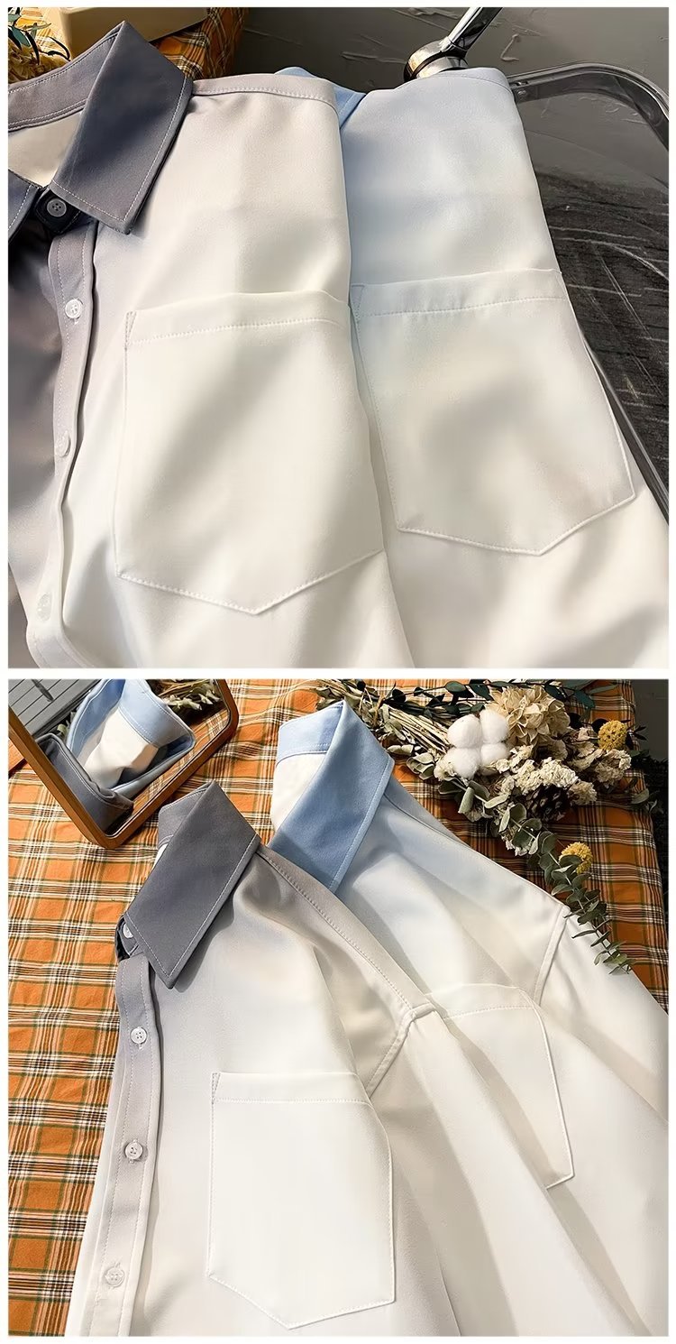 2026 봄/여름 그라데이션 긴팔 셔츠 남성 캐주얼 배색 트렌디 브랜드 멋스러운 일본풍 홍콩풍 프랑스 디자인 셔츠
