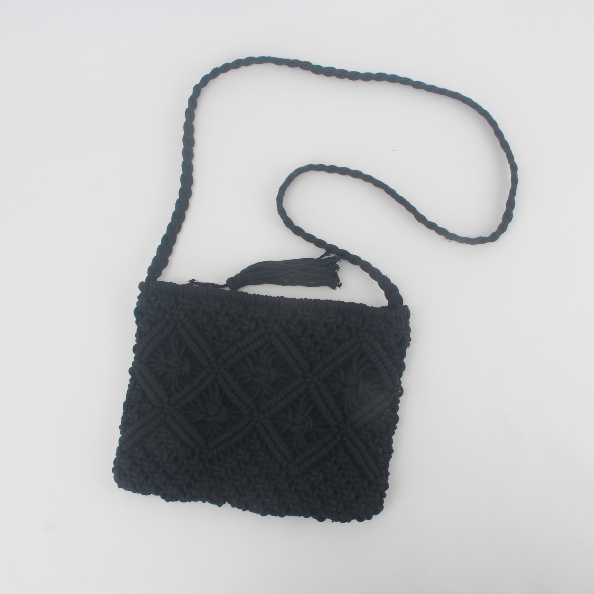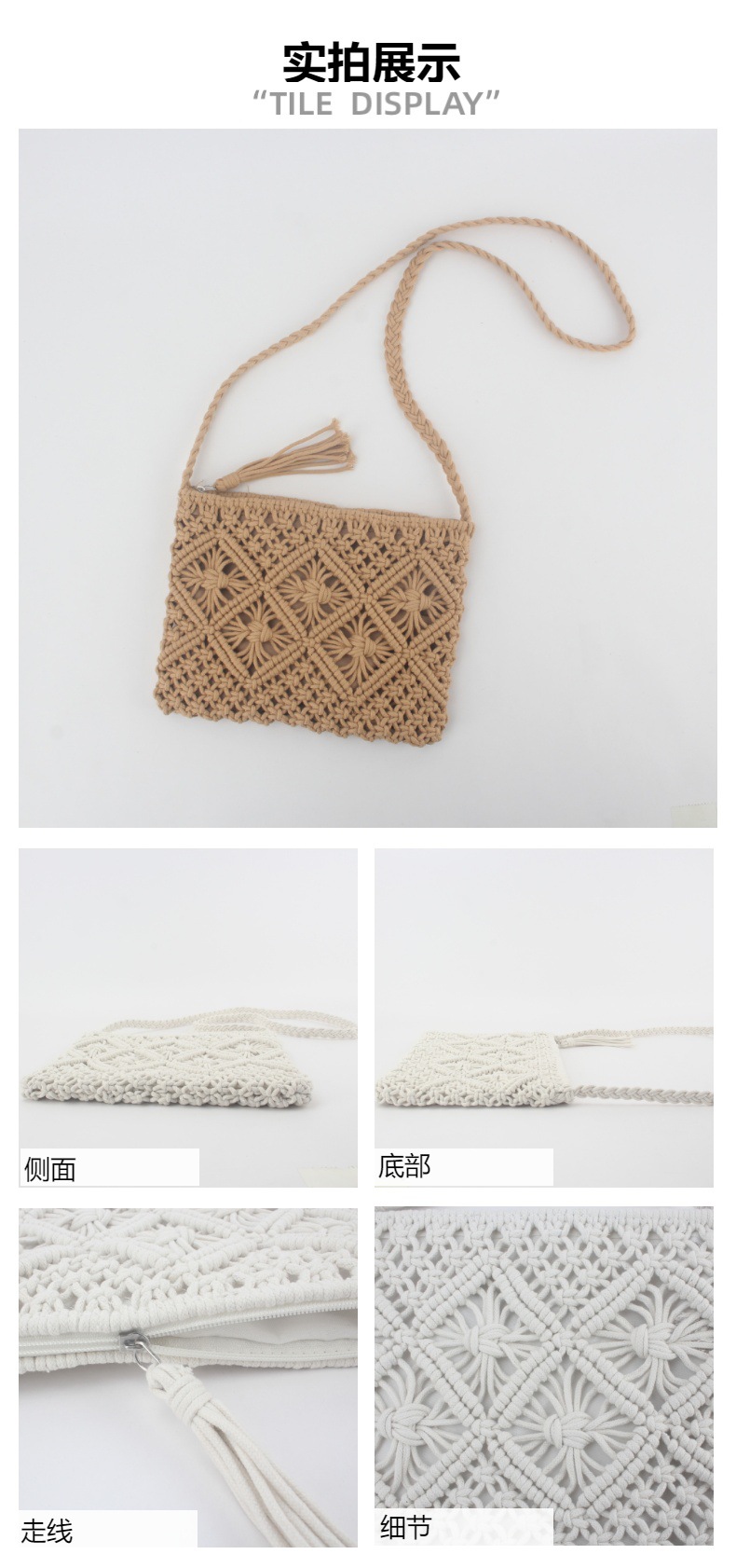 새로운 간단한 술 손 크로스 바디 이중 사용 여성 가방 면화 로프 짠 가방 빈티지 여름 해변 가방