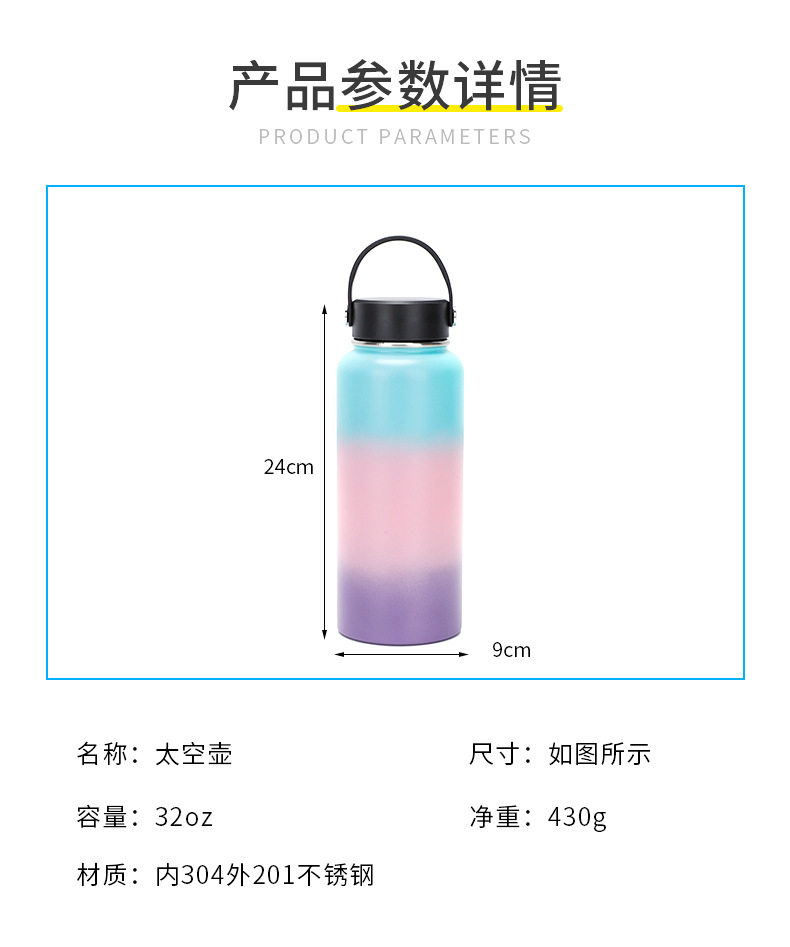 304 대용량 32oz 스테인레스 스틸 보온병 컵 스포츠 주전자 야외 여행 냄비 휴대용 등산 공간 냄비