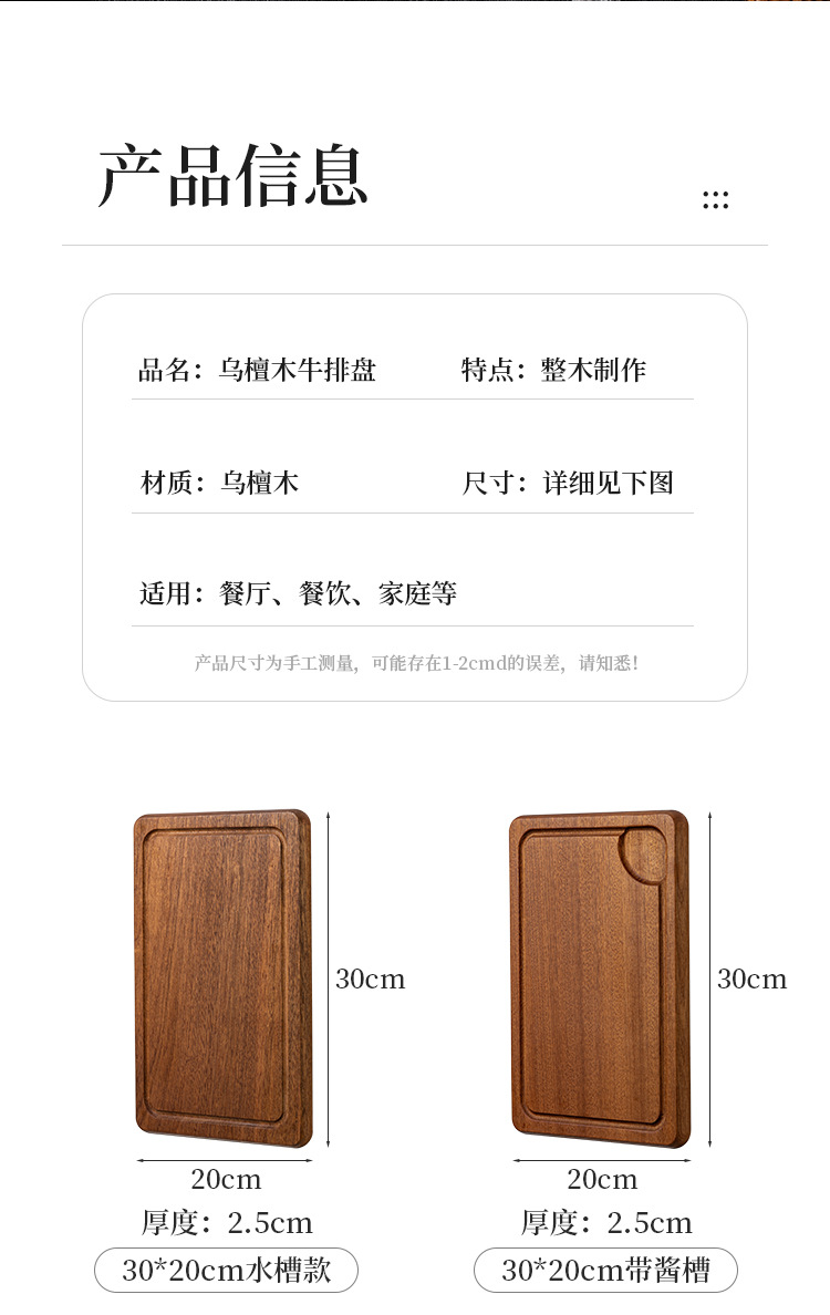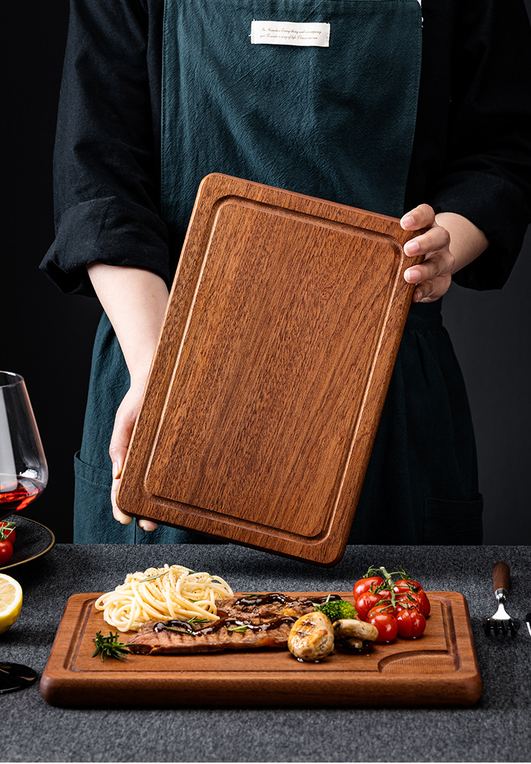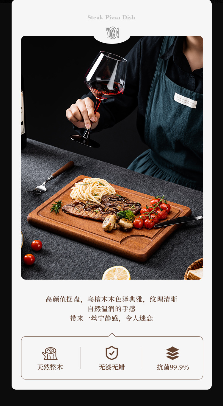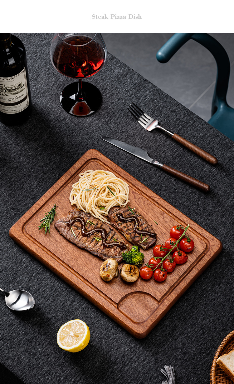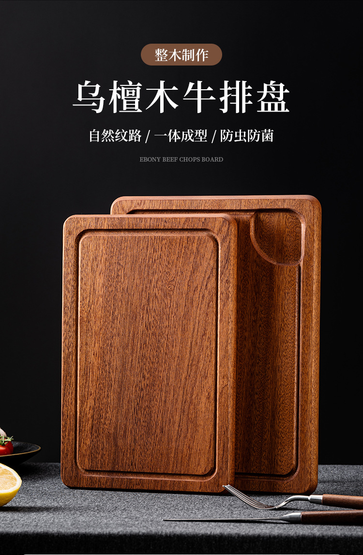 흑단 단단한 나무 스테이크 접시 서양 접시 사프리 스테이크 보드 트레이 레스토랑 스테이크 나무 접시 피자 접시스토어 가기