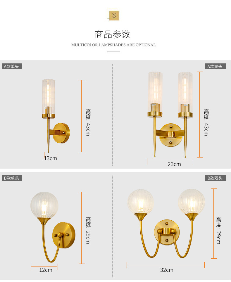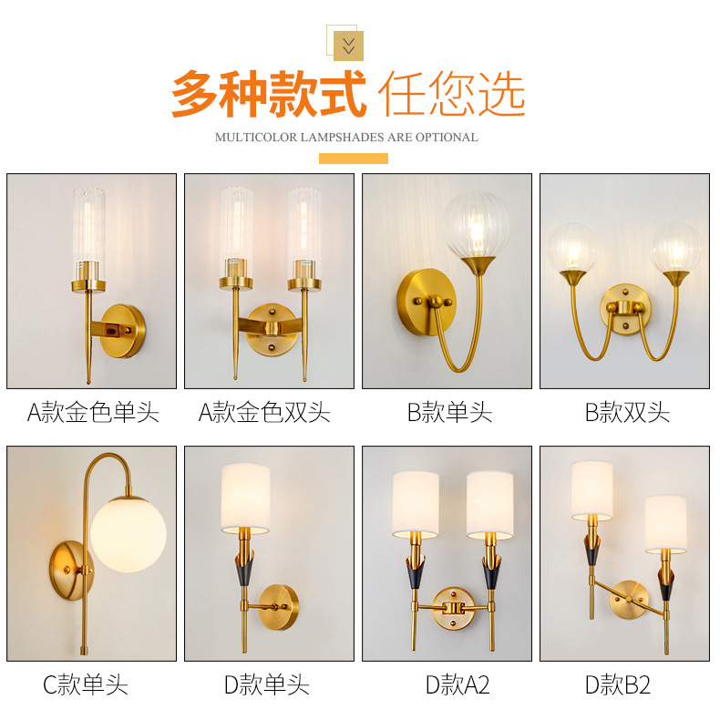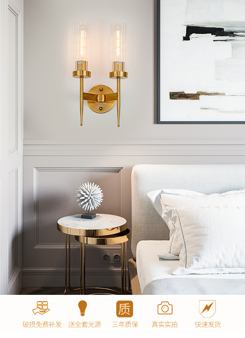 后现代北欧客厅卧室过道床头灯led水晶轻奢美式灯简约背景墙壁灯