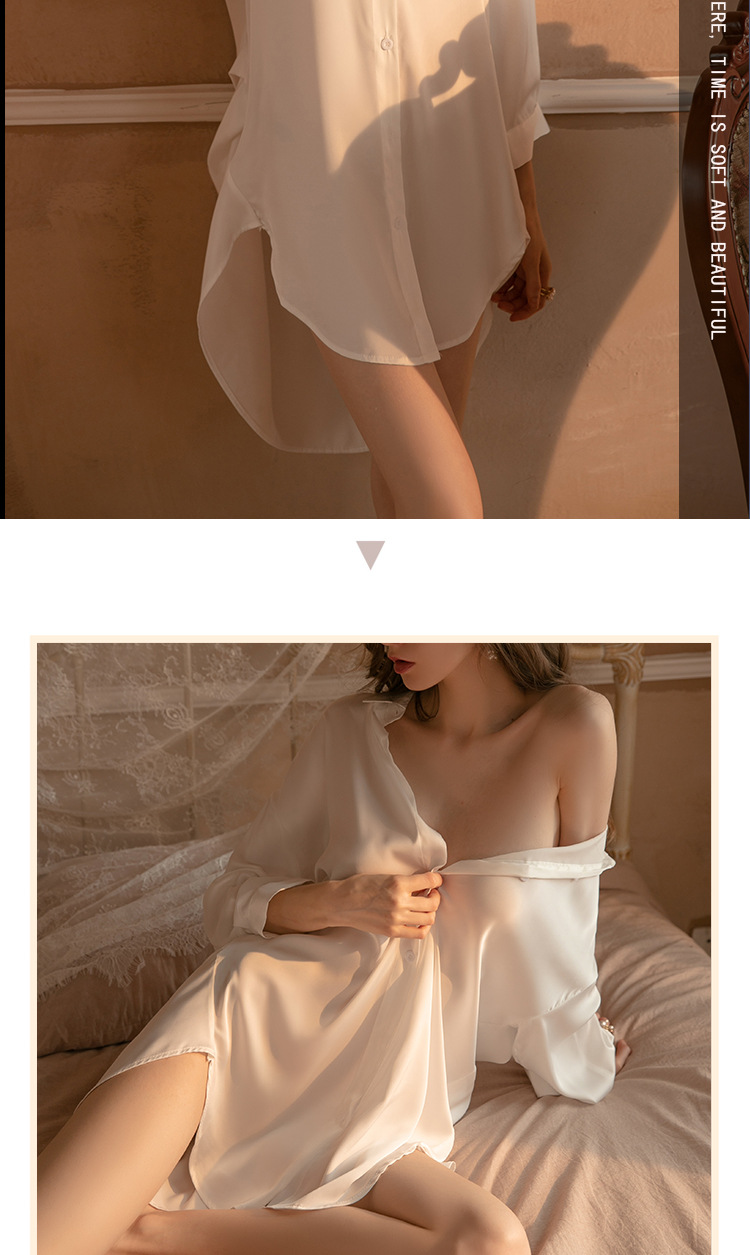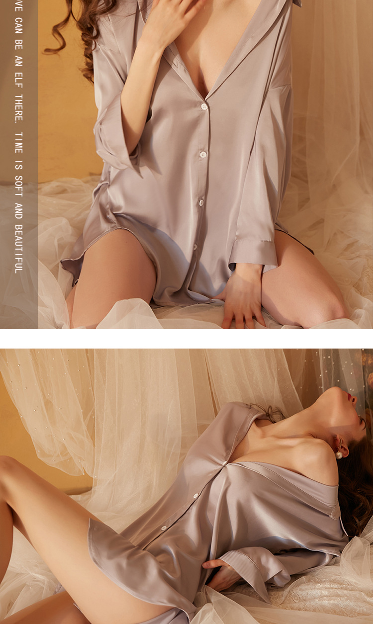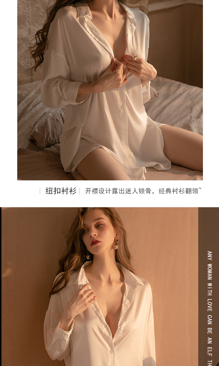 Xian Yi 섹시한 잠옷 여자의 여름 섹스 유혹 남자 친구 스타일 셔츠 통기성 얼음 실크 흰색 셔츠 가정 옷 430스토어 가기