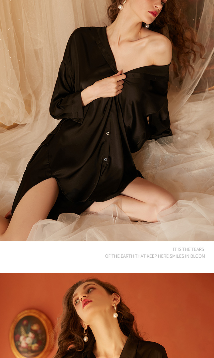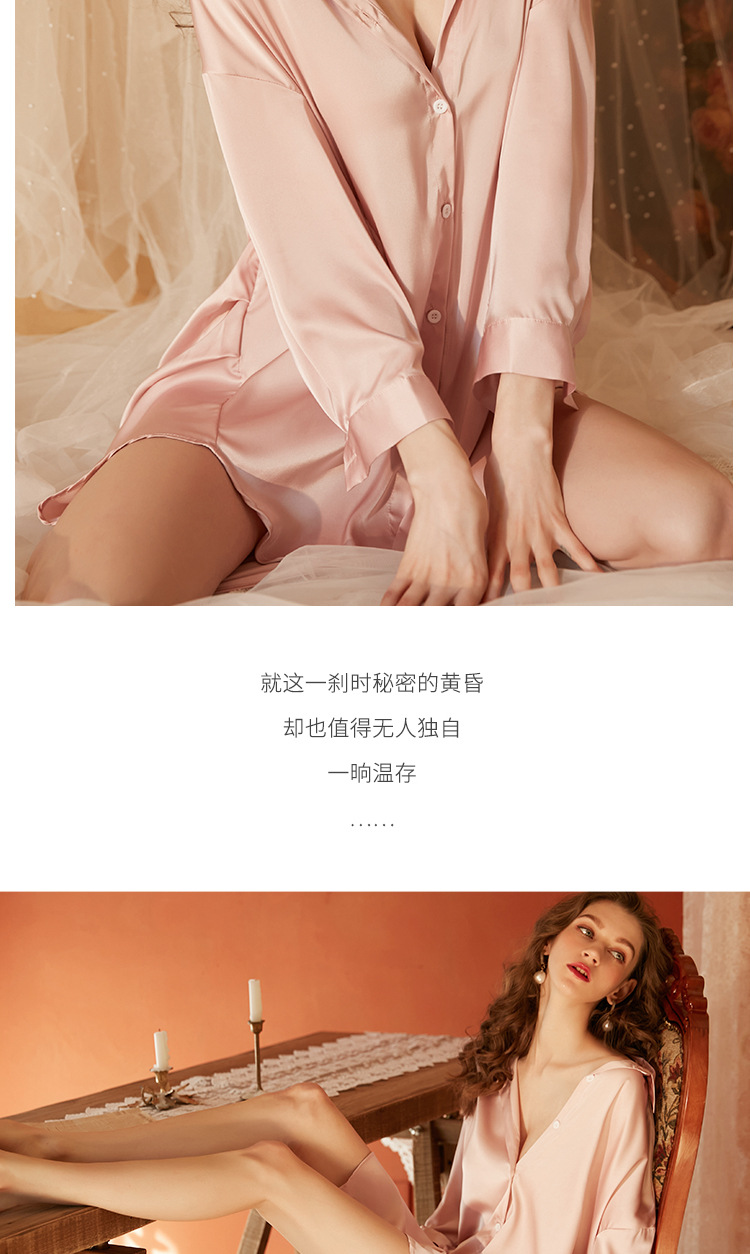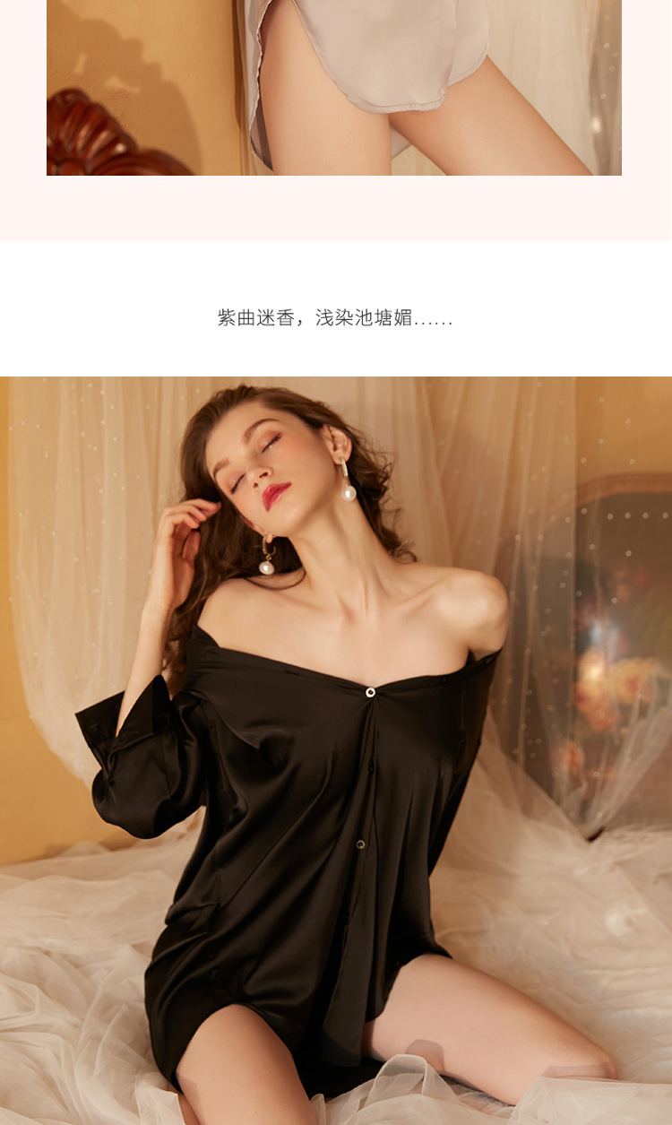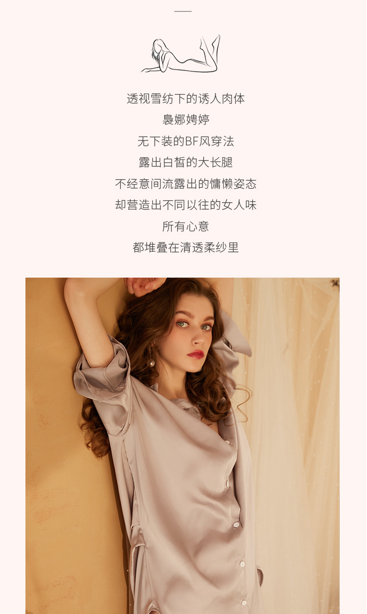 Xian Yi 섹시한 잠옷 여자의 여름 섹스 유혹 남자 친구 스타일 셔츠 통기성 얼음 실크 흰색 셔츠 가정 옷 430스토어 가기