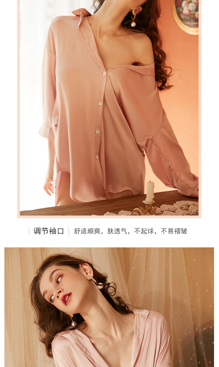 Xian Yi 섹시한 잠옷 여자의 여름 섹스 유혹 남자 친구 스타일 셔츠 통기성 얼음 실크 흰색 셔츠 가정 옷 430
