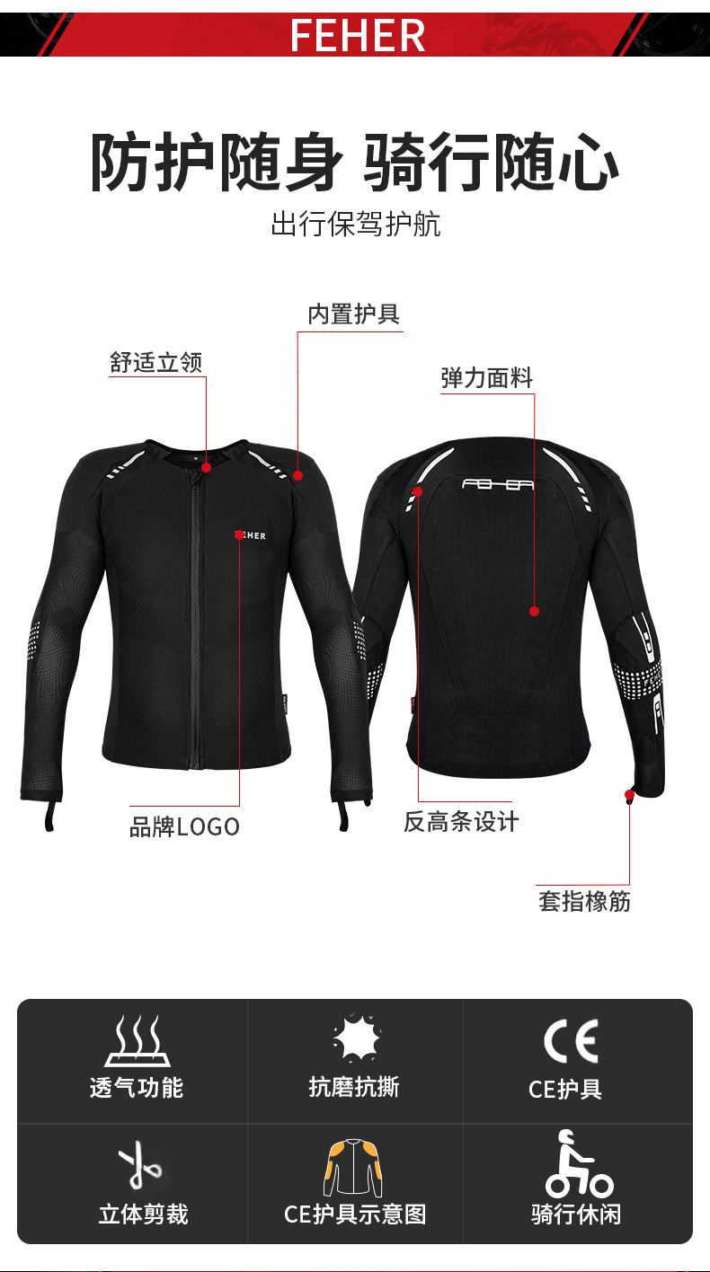 FEHER 오토바이 라이딩 의류 여름용 오토바이 소프트 아머 재킷 통풍 및 통기성 보호 아머 탑스토어 가기