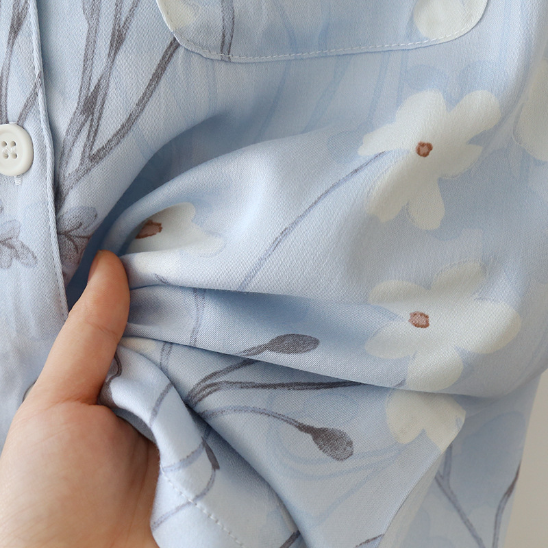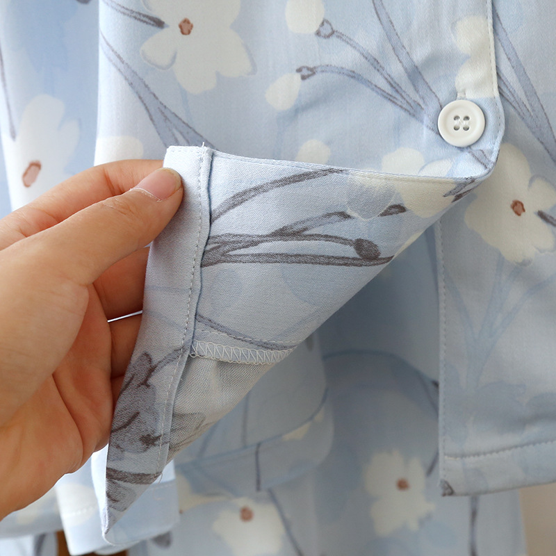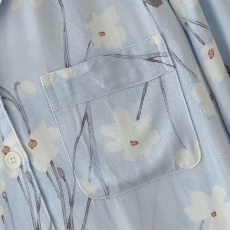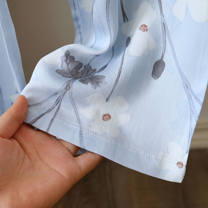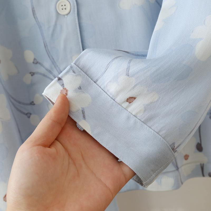 새틴 잠옷 여성용 여름 긴팔 바지 투피스 트리뷰트 실크 얇은 통기성 라펠 가디건 한국식 가정복스토어 가기