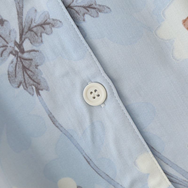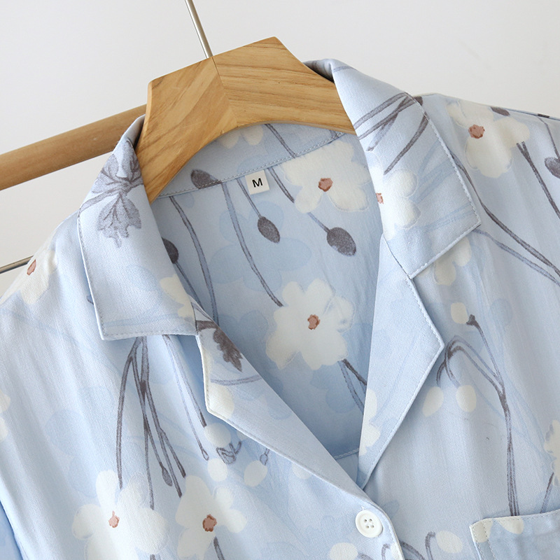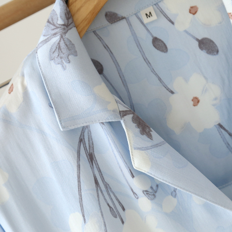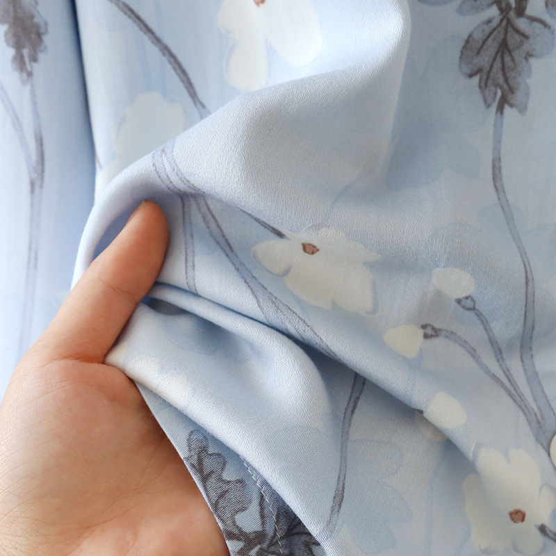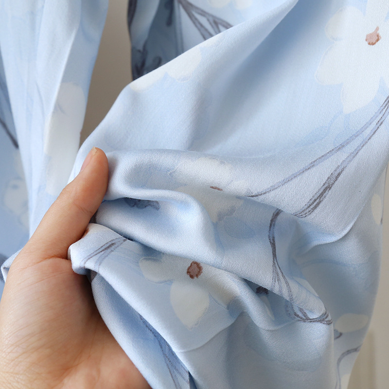 새틴 잠옷 여성용 여름 긴팔 바지 투피스 트리뷰트 실크 얇은 통기성 라펠 가디건 한국식 가정복스토어 가기
