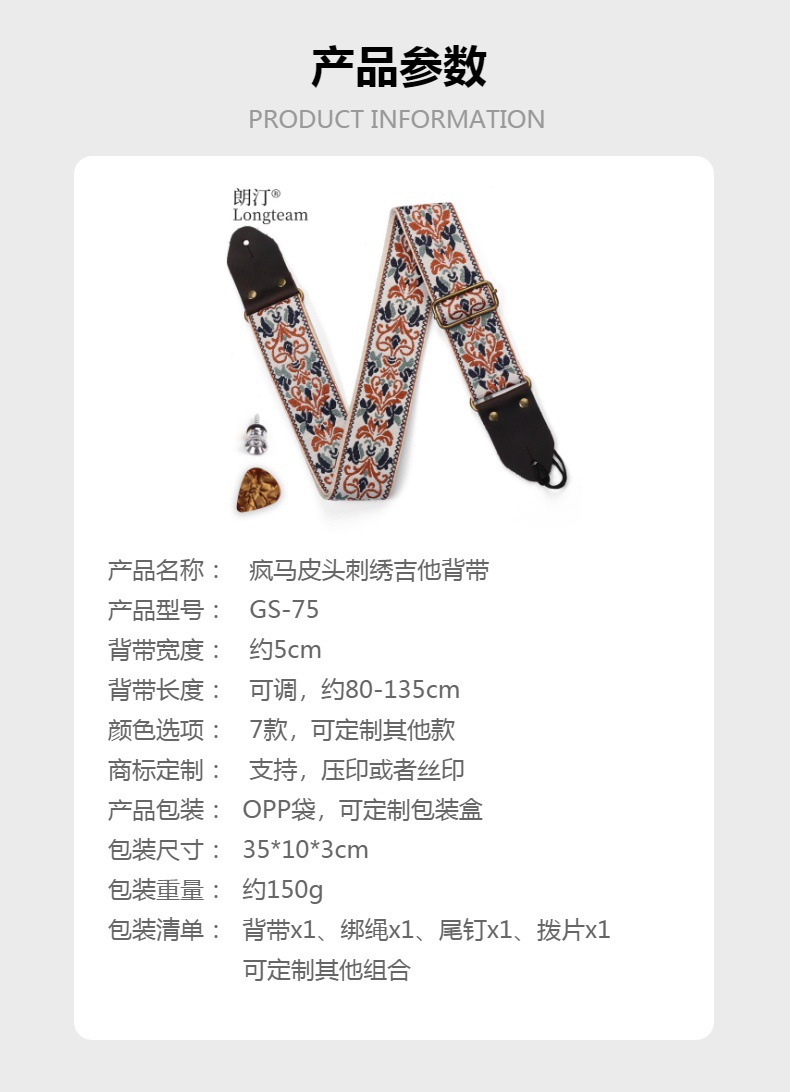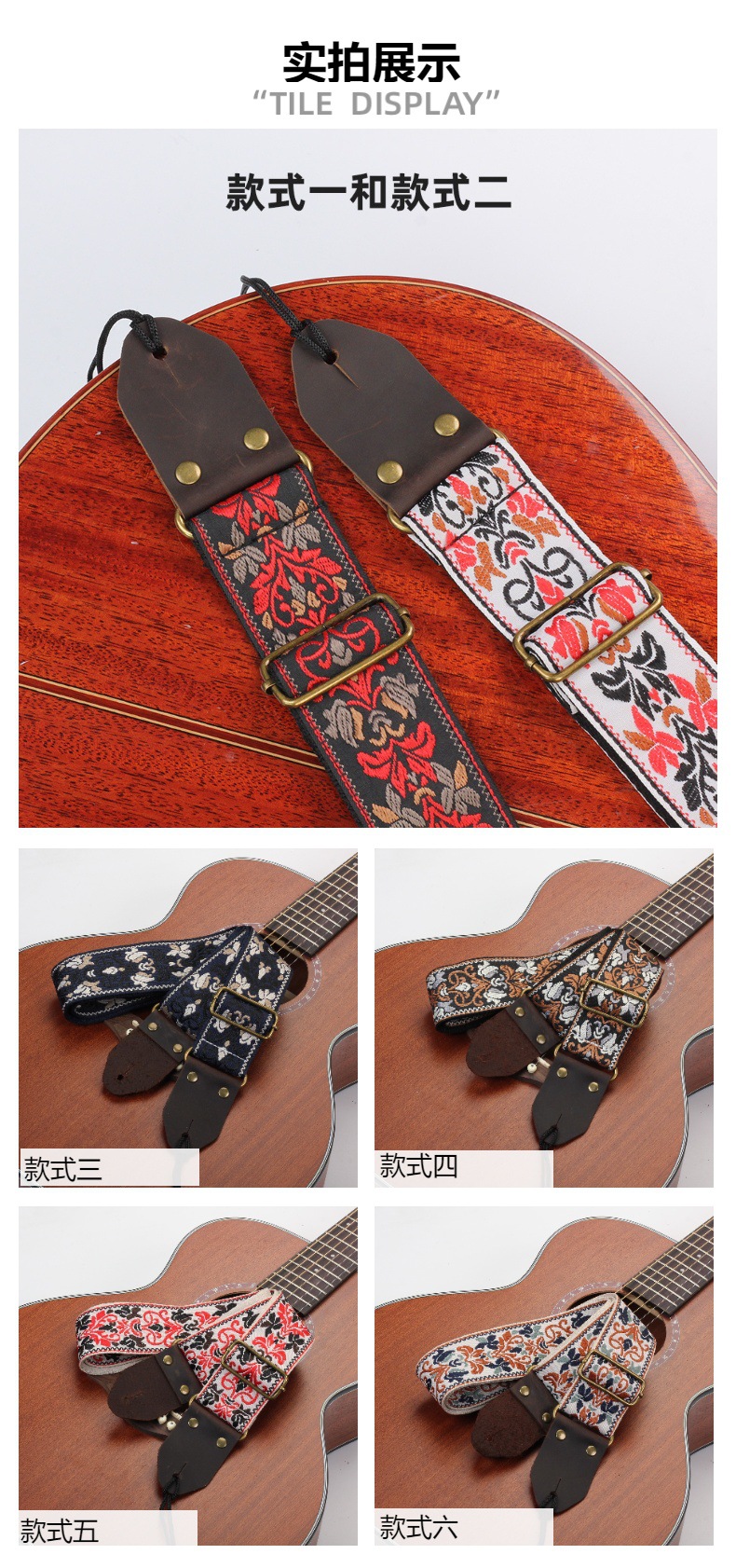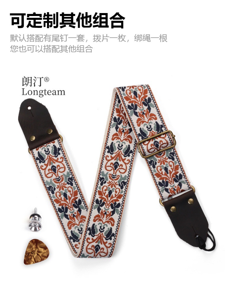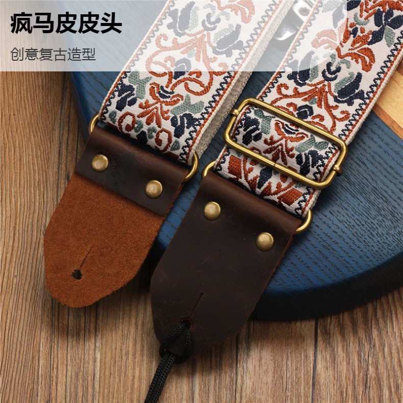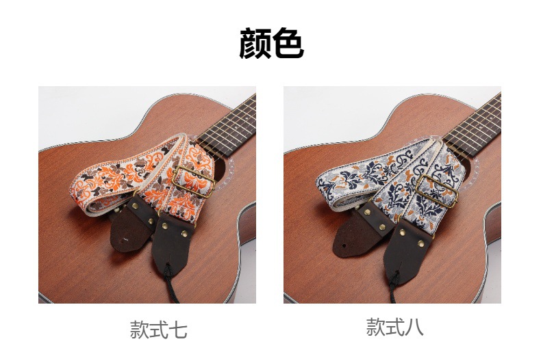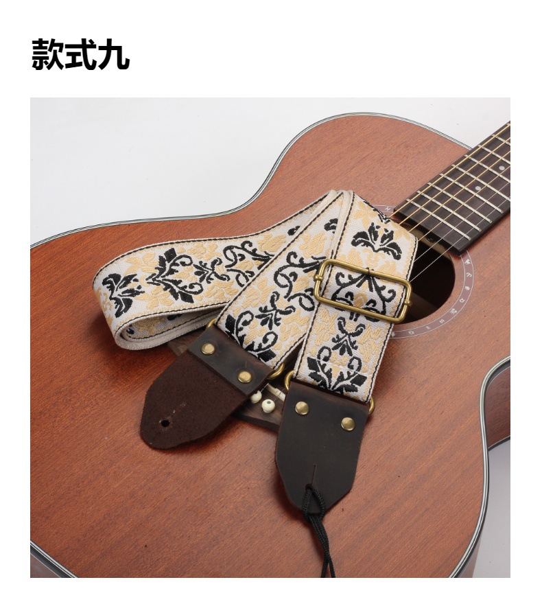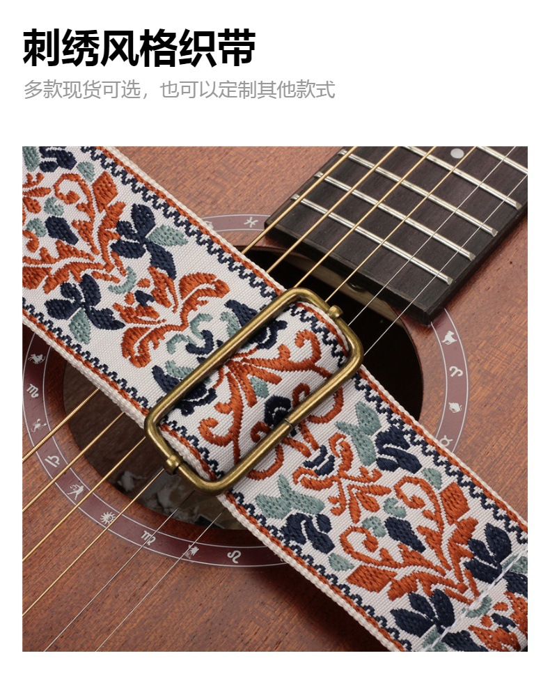 자수 포크 기타 스트랩 자카드 더블 레이어 어쿠스틱 기타 일렉트릭 기타베이스 테일 스터드가있는 다채로운 숄더 스트랩 액세서리스토어 가기