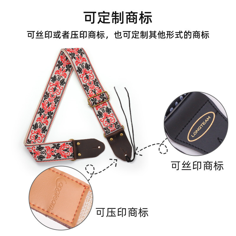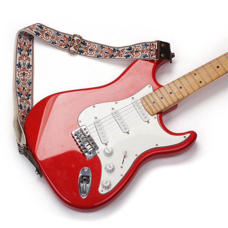 자수 포크 기타 스트랩 자카드 더블 레이어 어쿠스틱 기타 일렉트릭 기타베이스 테일 스터드가있는 다채로운 숄더 스트랩 액세서리