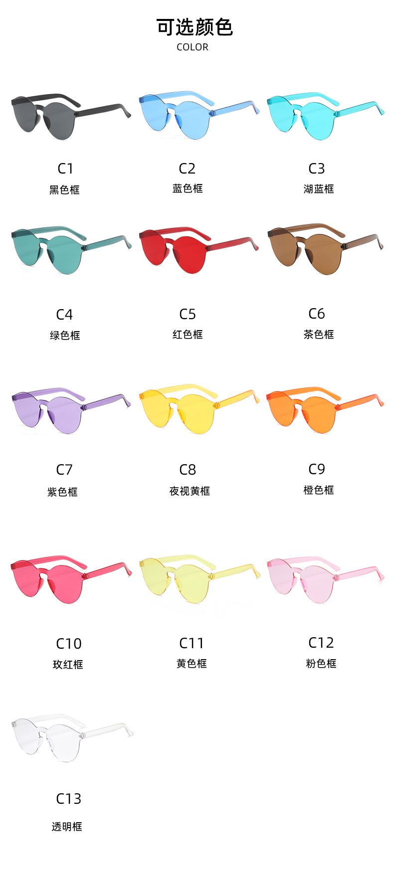 2024 국경없는 패션 선글라스 캔디 컬러 컬러 안경 여자 친구 원피스 자매 커플 장식