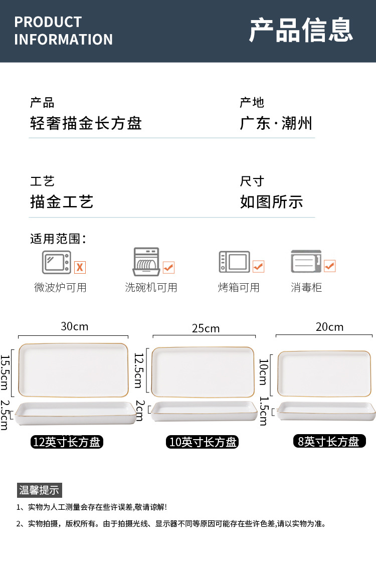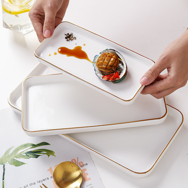 창작 세라믹 디너 플레이트 직사각형 접시 디저트 플레이트 케이크 플레이트 서양 음식 식기 생선제 접시 치킨 날개 생선회 플레이트