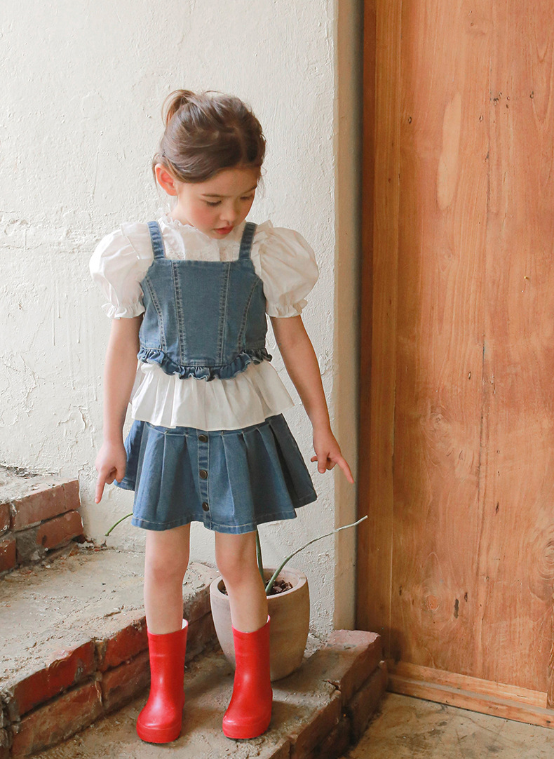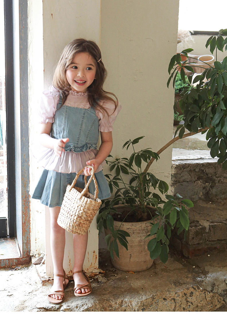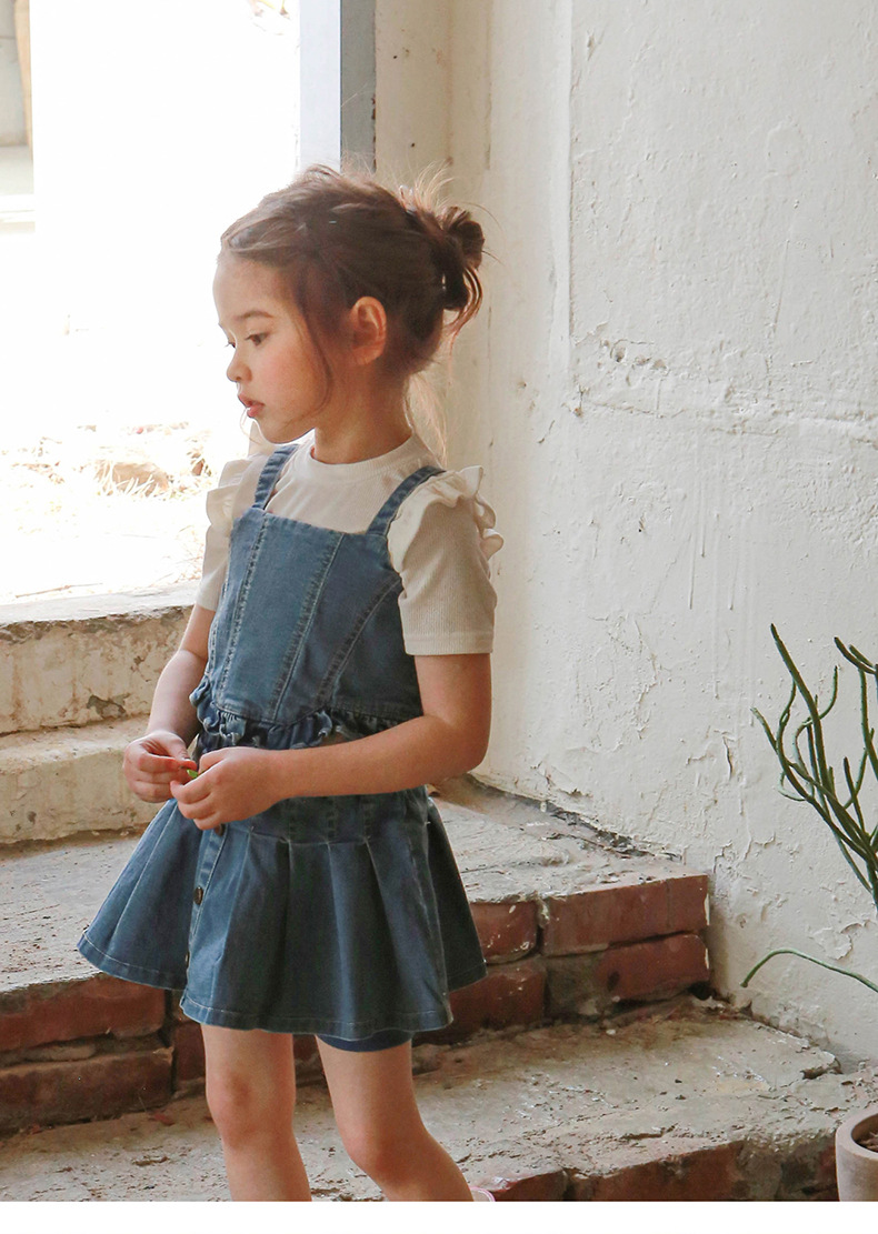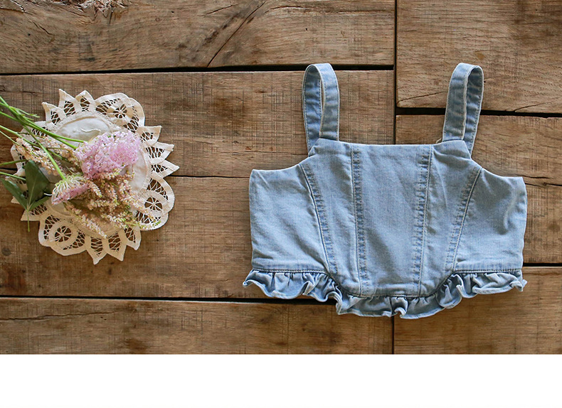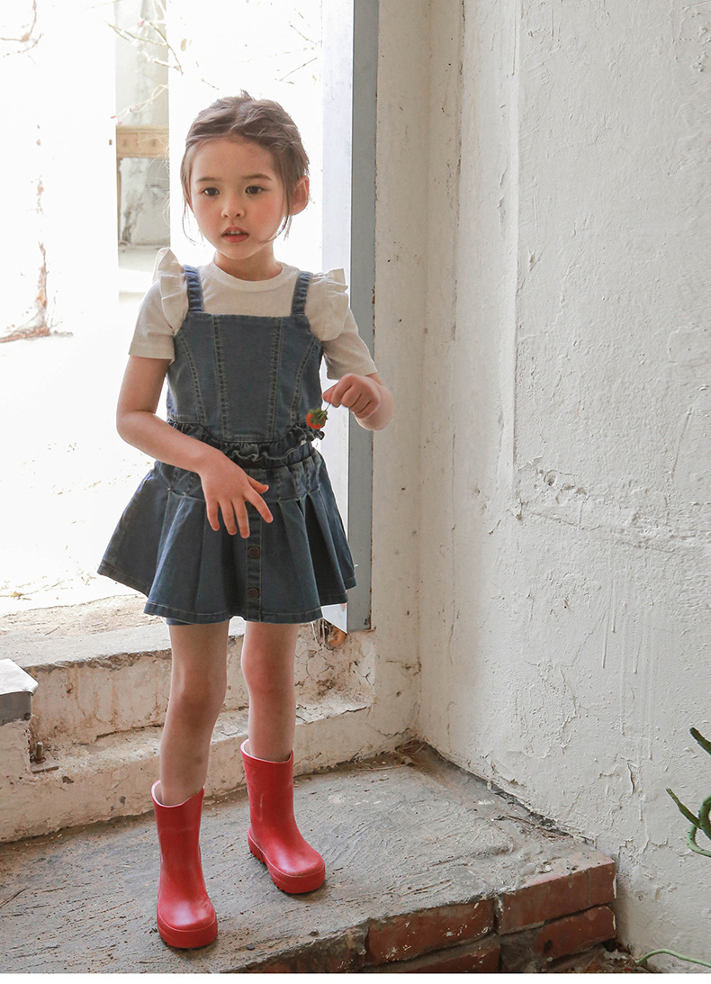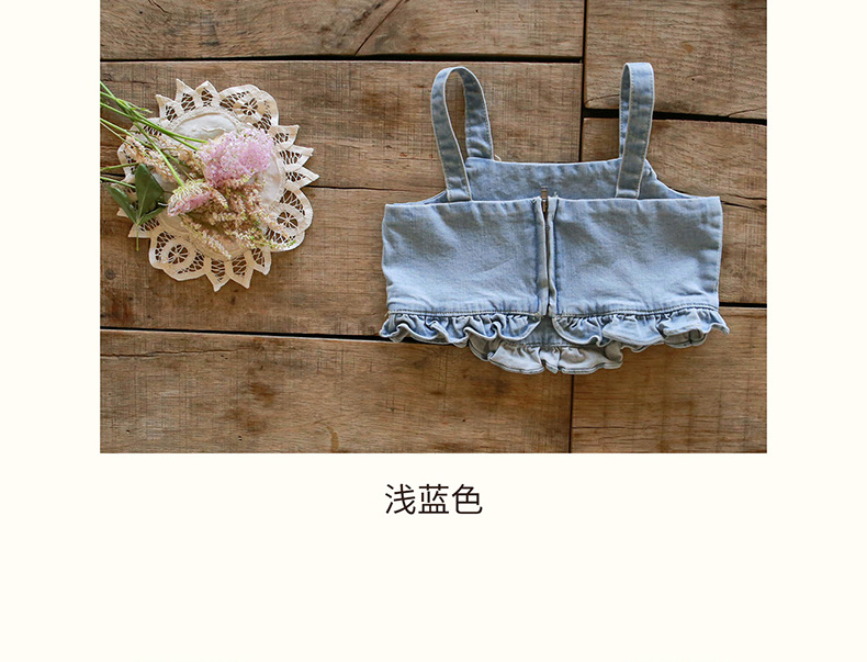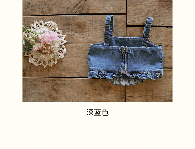 2025년 신상 딸기산 한국 아동복 여아 패셔너블 데님 멜빵조끼 재고 있음