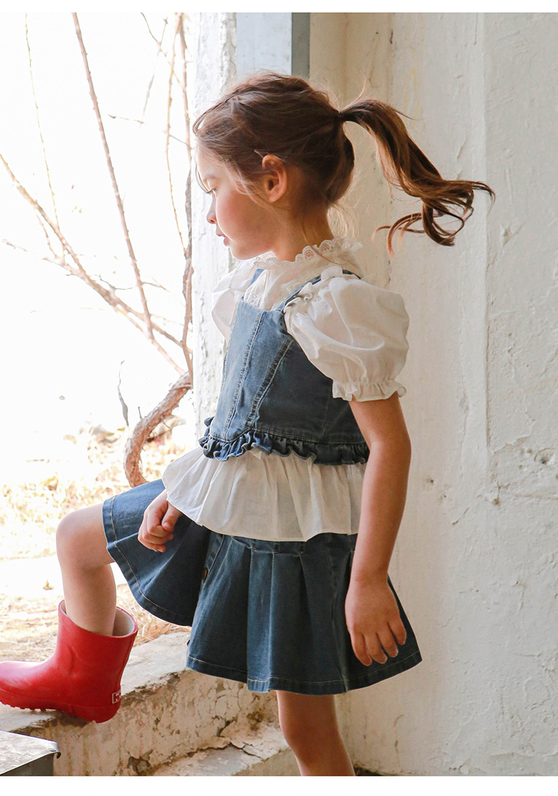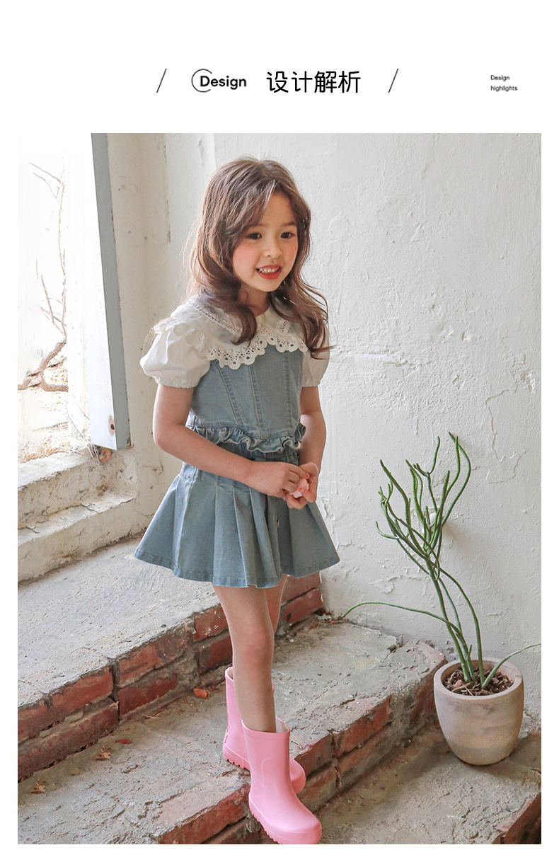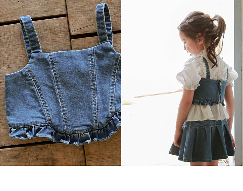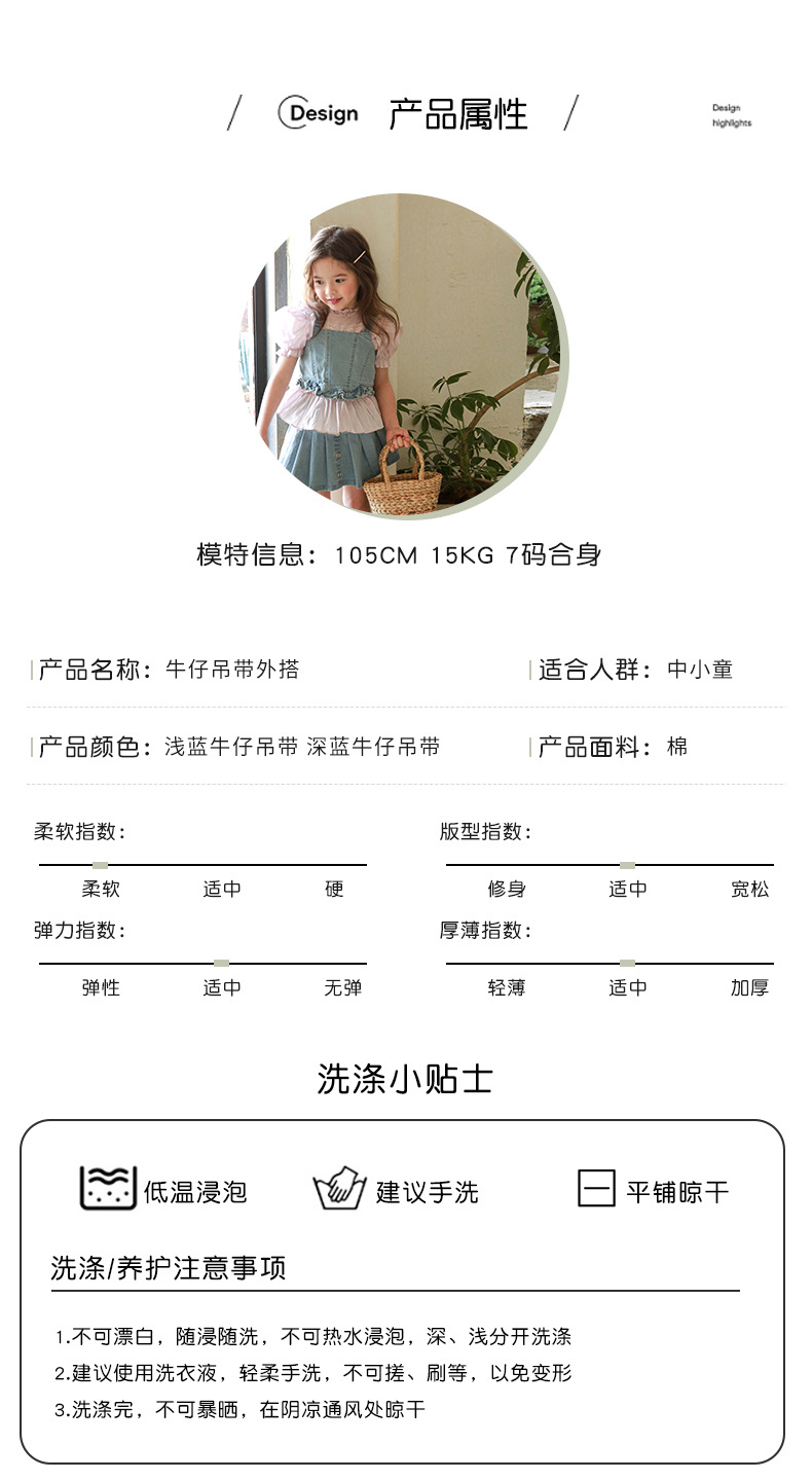 2025년 신상 딸기산 한국 아동복 여아 패셔너블 데님 멜빵조끼 재고 있음스토어 가기