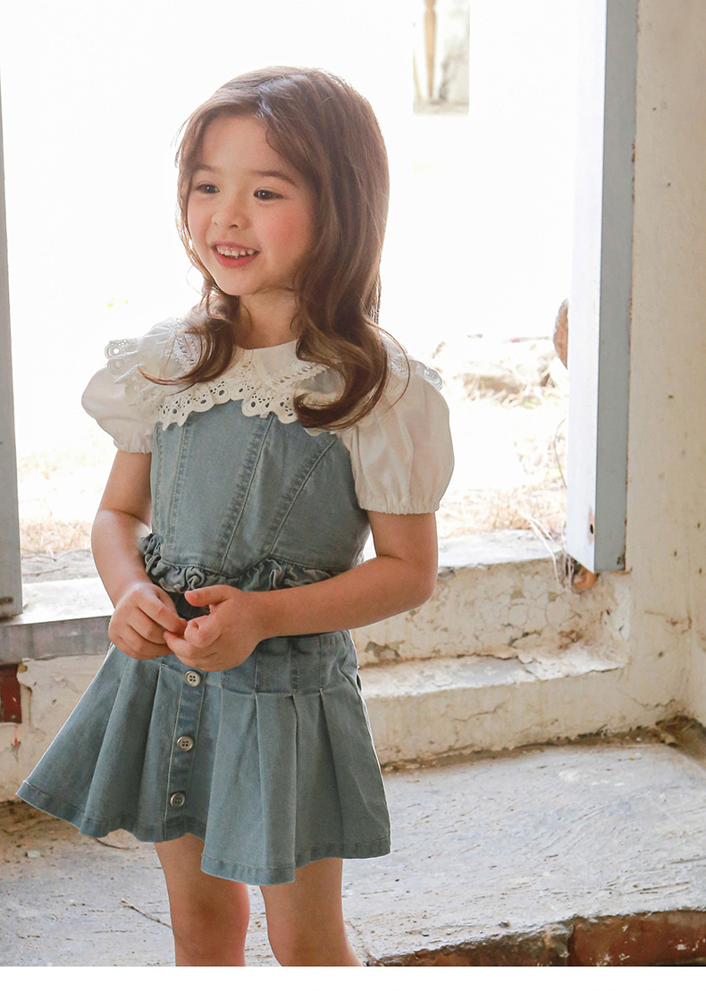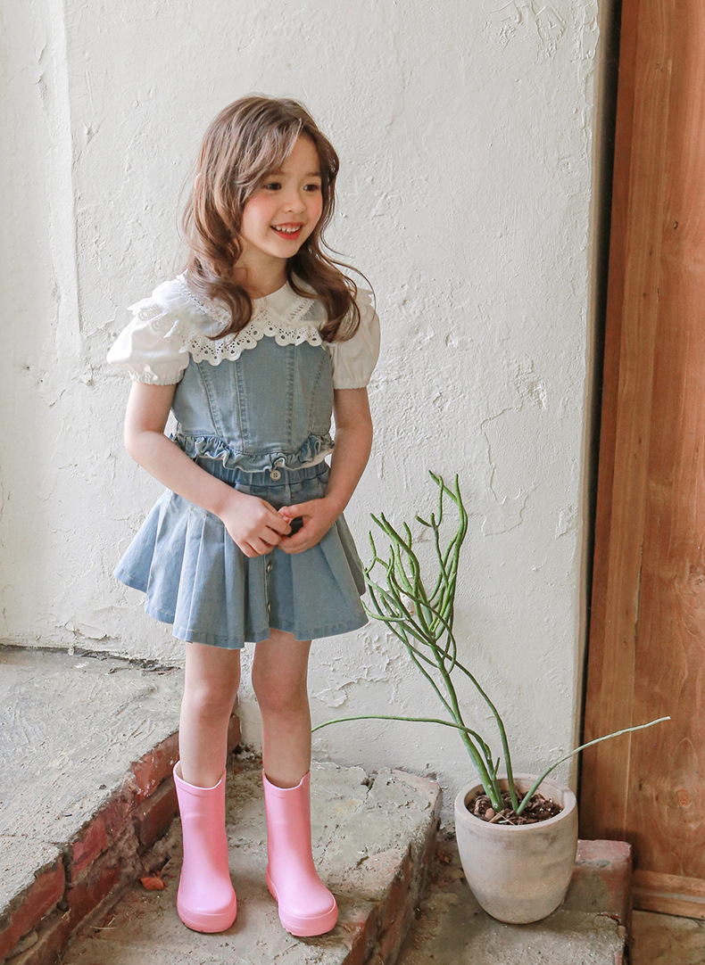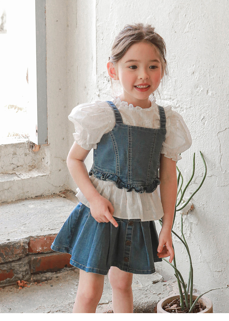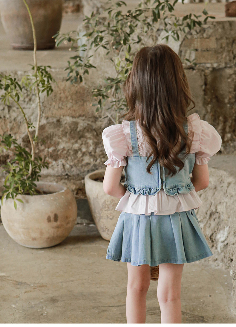 2025년 신상 딸기산 한국 아동복 여아 패셔너블 데님 멜빵조끼 재고 있음스토어 가기