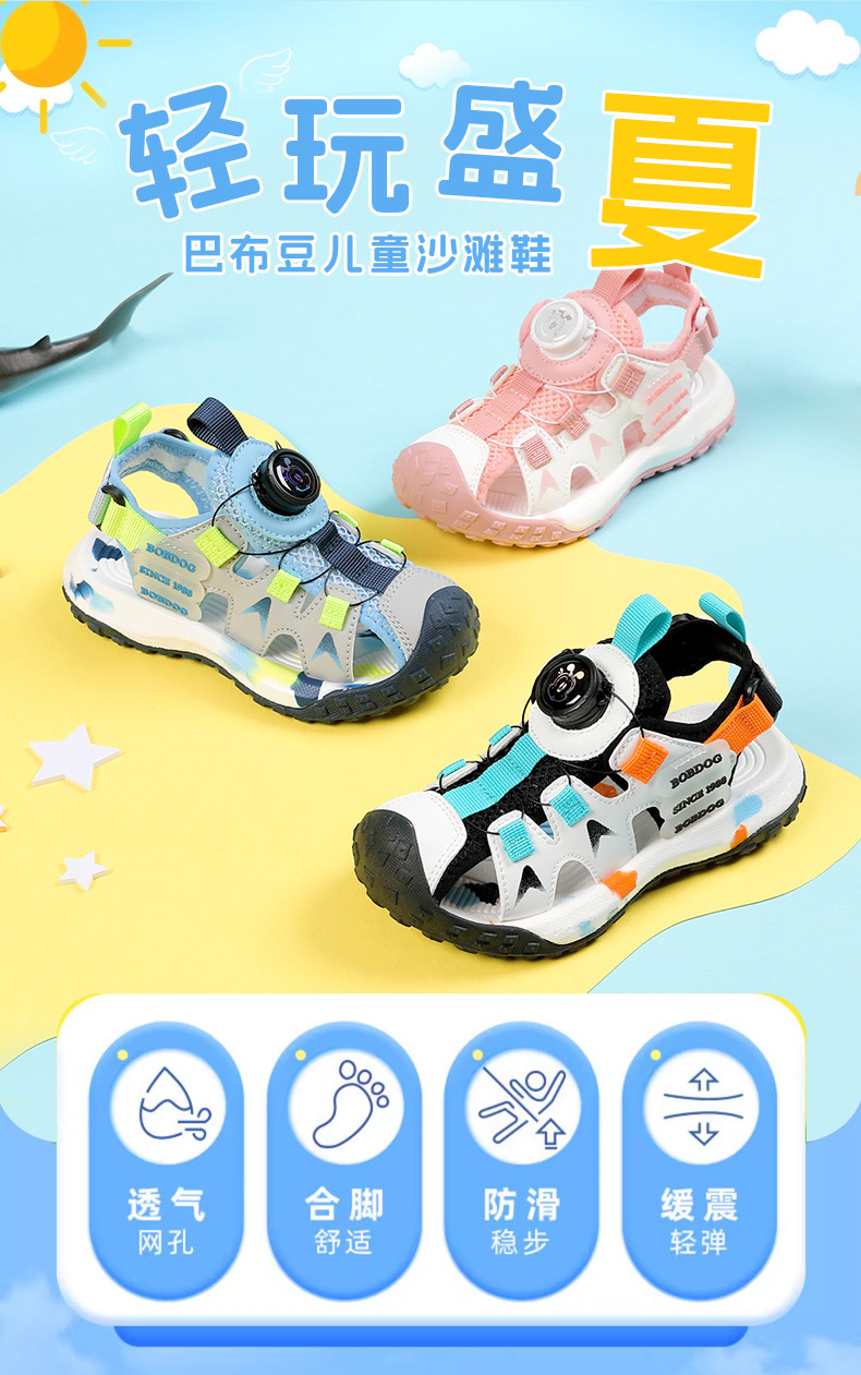바부두 아동화 2024년 신상 여름 중대형 아동 캐주얼 샌들 아동용 토캡 싱글 메쉬 비치 슈즈스토어 가기
