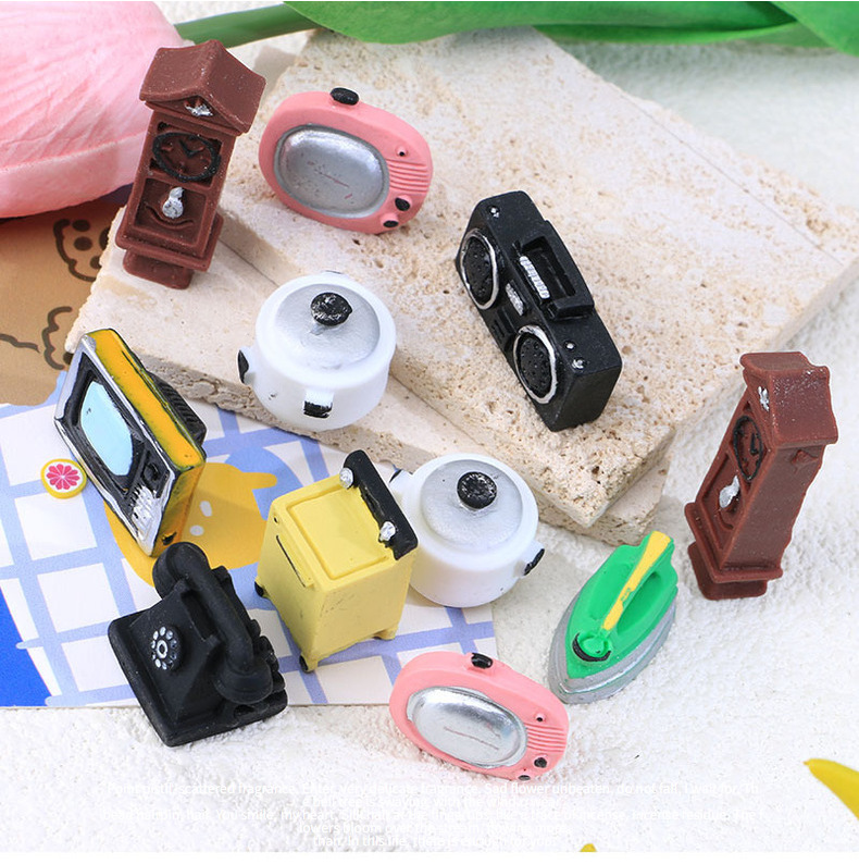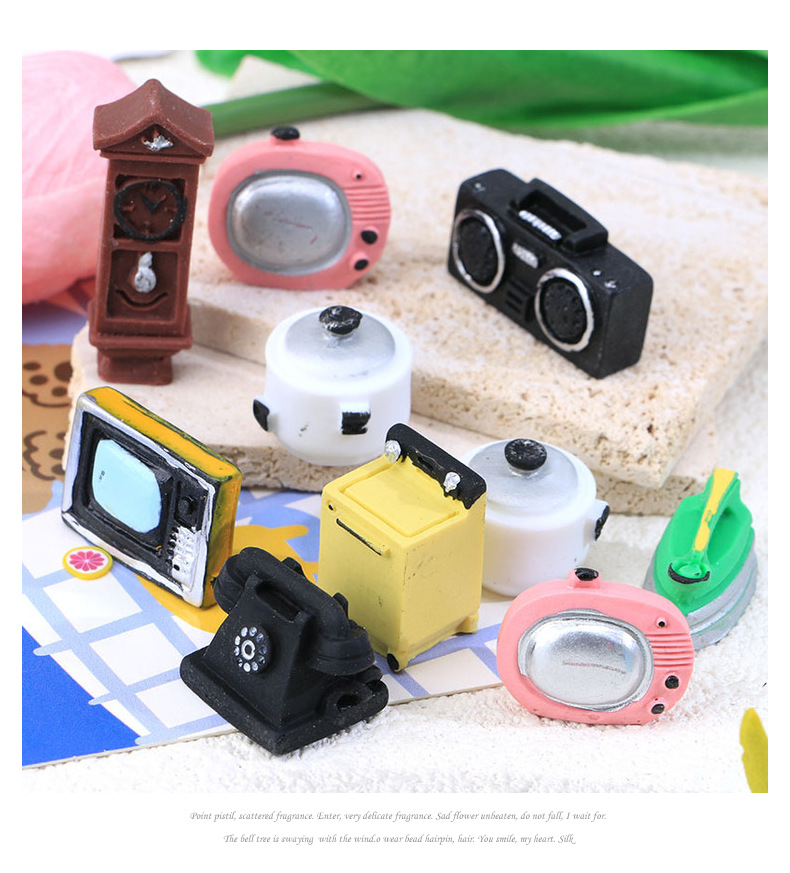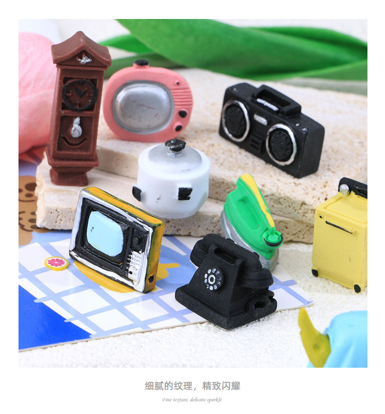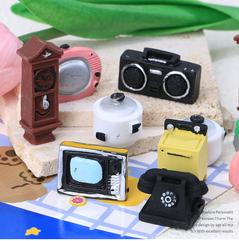 빈티지 크림 접착제 떨어지는 휴대 전화 케이스 장식 수지 작은 액세서리 미니 라디오 전화 TV스토어 가기