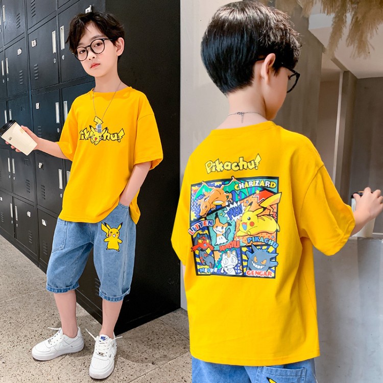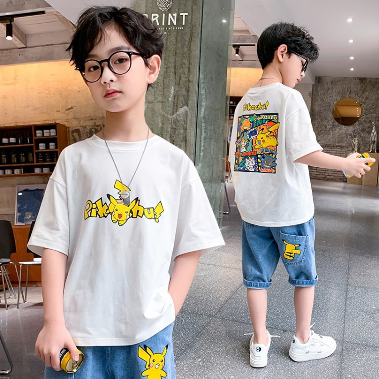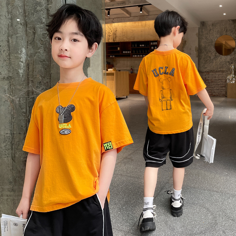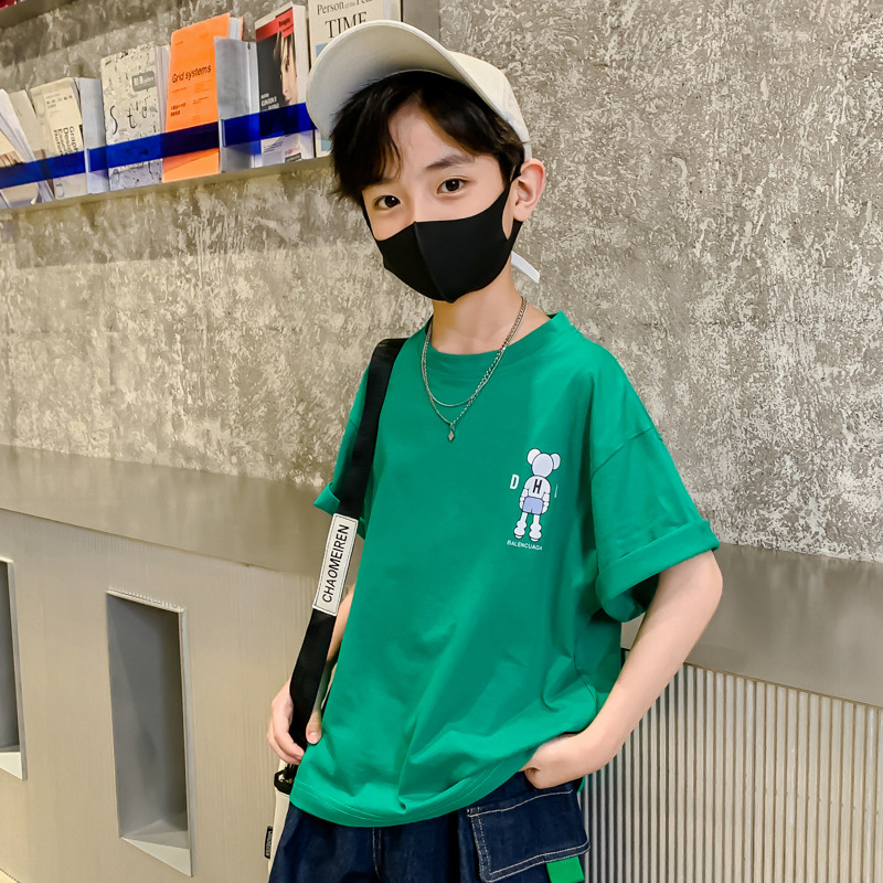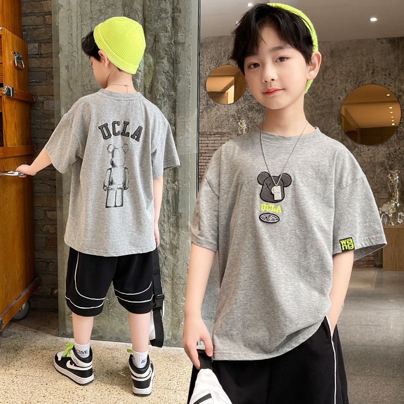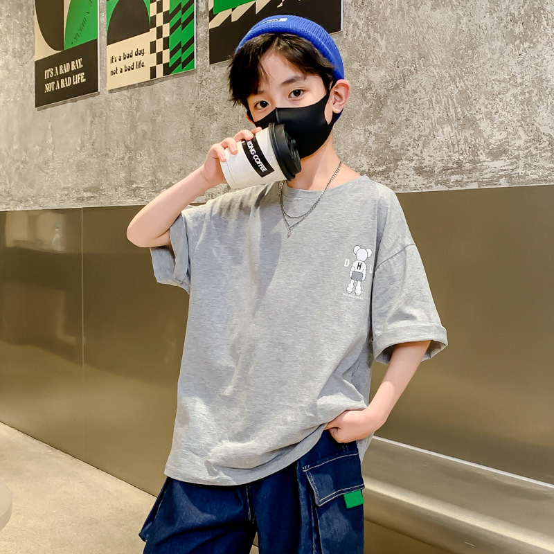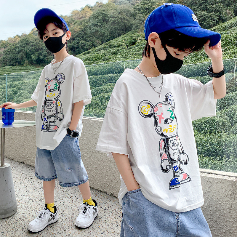 아동복, 남아용 반팔 티셔츠, 여름옷, 중대형 아동용 여름 얇은 반팔 하의 셔츠, 만화 트렌디 티셔츠스토어 가기