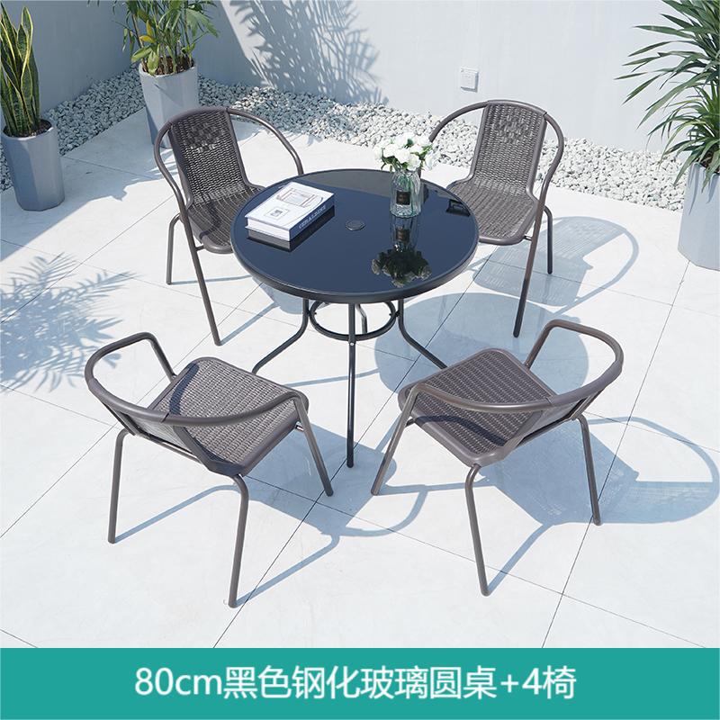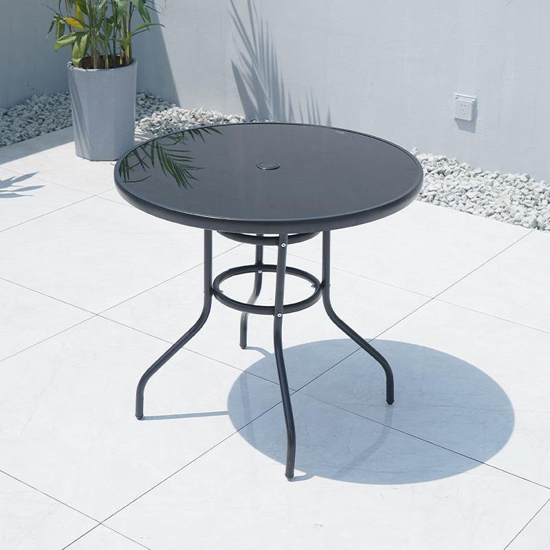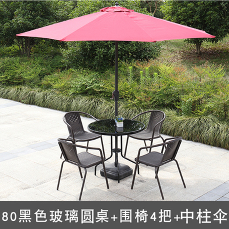 • 검은 유리 원형 테이블 80 개 + 의자 4 개 + 태양 우산