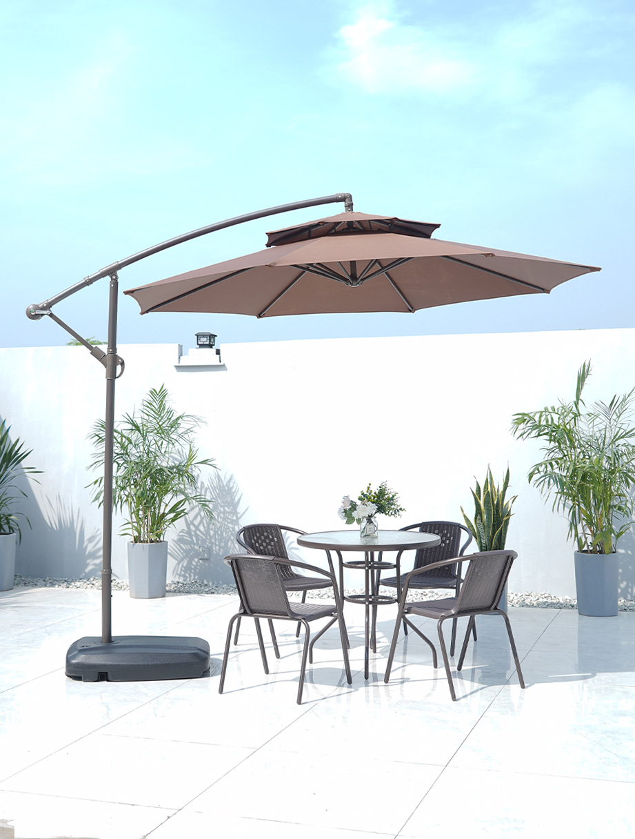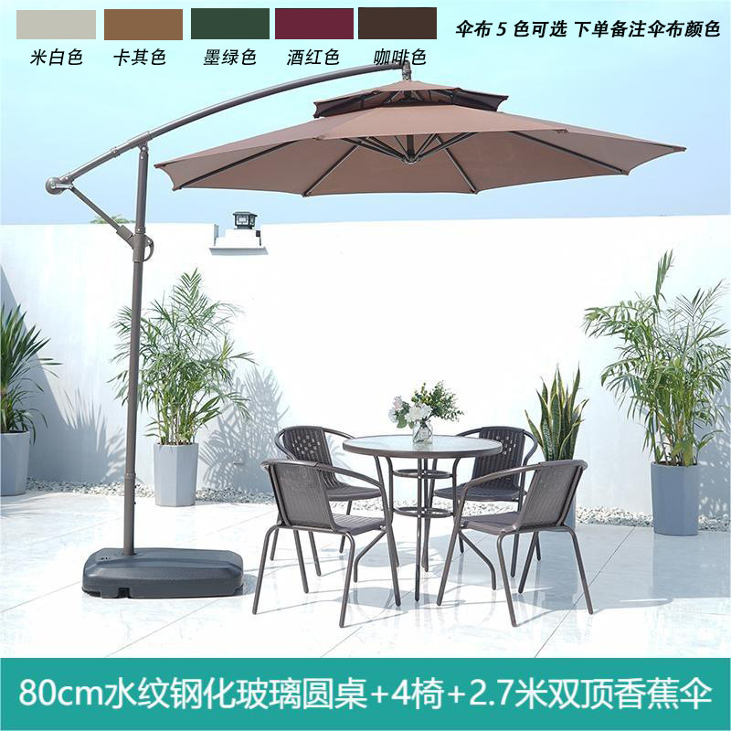• 물 패턴 유리 원형 테이블 80 개 + 의자 4 개 + 더블 탑 바나나 우산