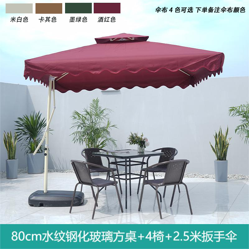 • 워터 패턴 유리 사각 테이블 80 개 + 의자 4 개 + 더블 태양 우산