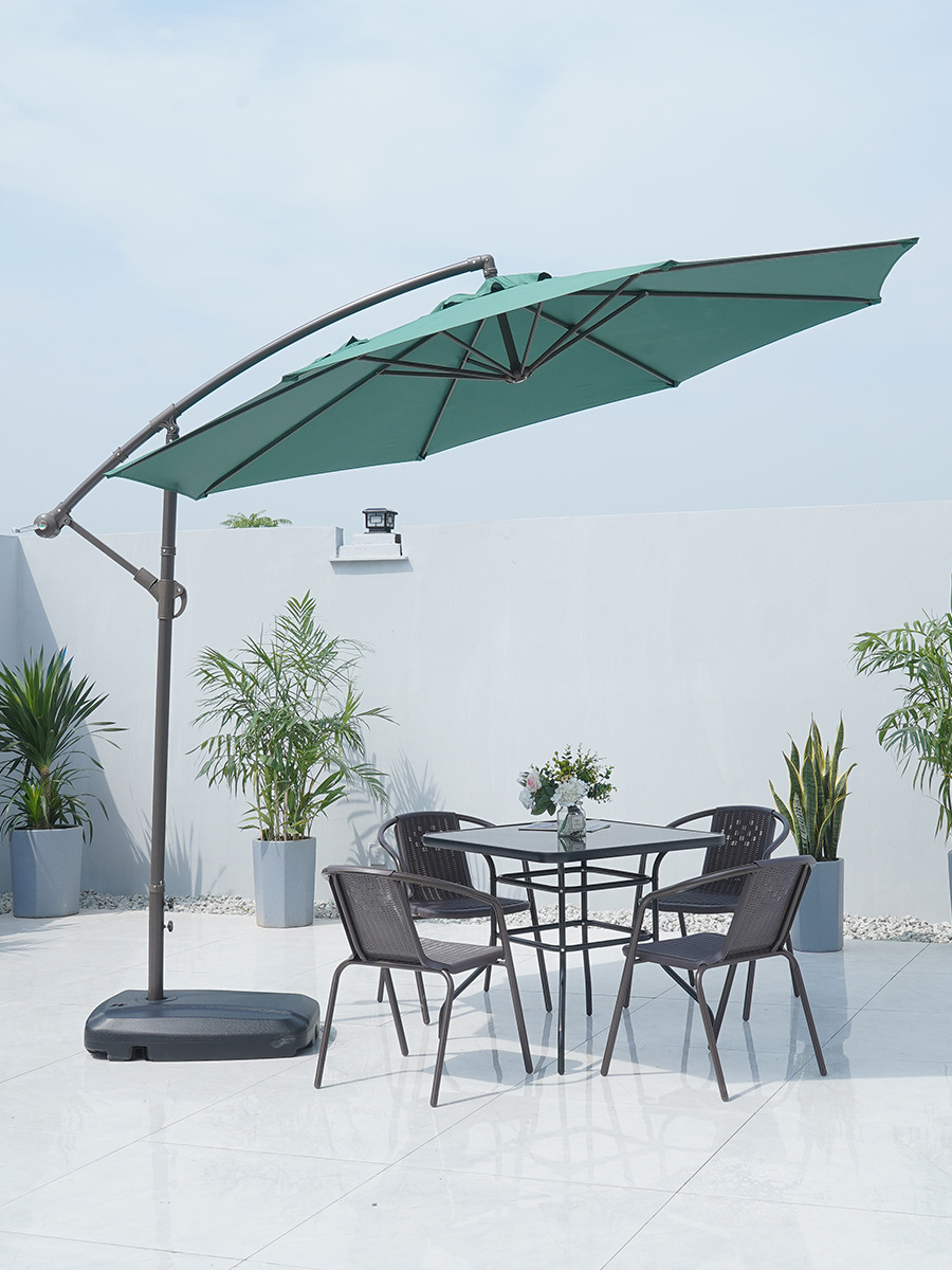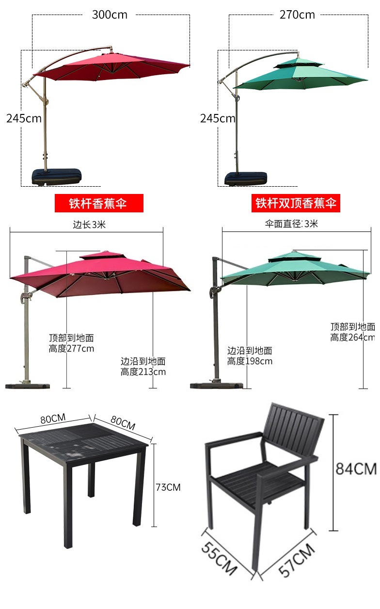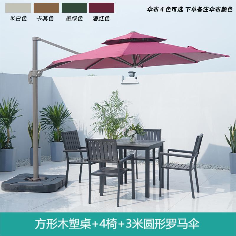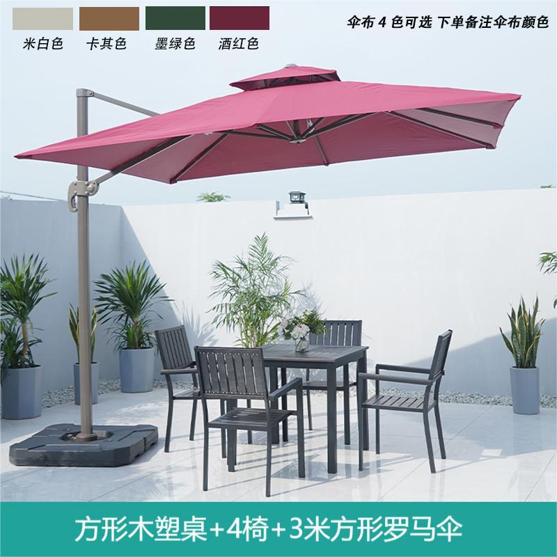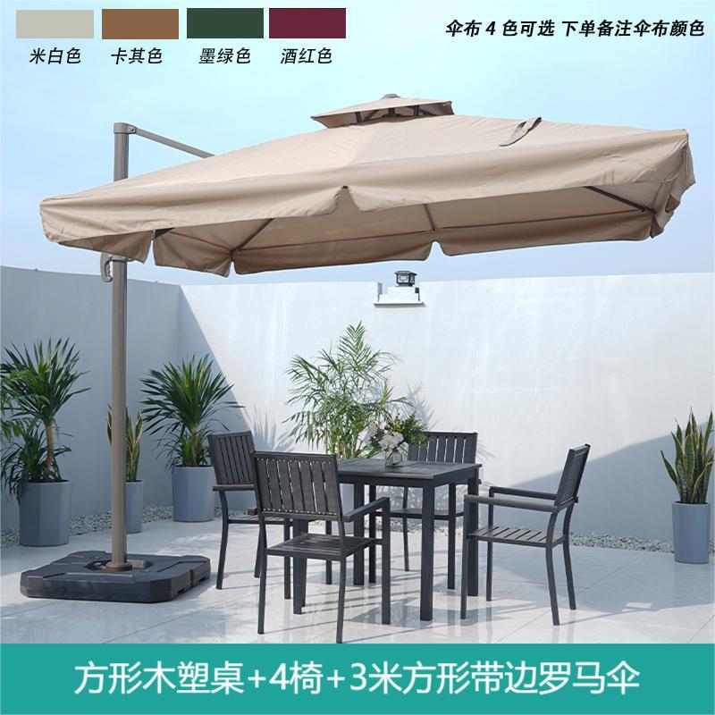 • 정사각형 나무 플라스틱 테이블 + 4 의자 + 3 m 정사각형 로마 우산