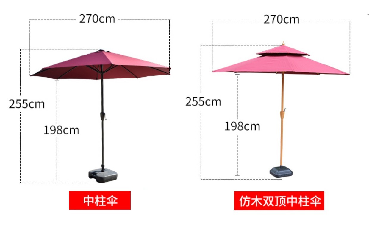 • 사각 나무 플라스틱 테이블 + 4 의자 + 3 m 원형 로마 우산