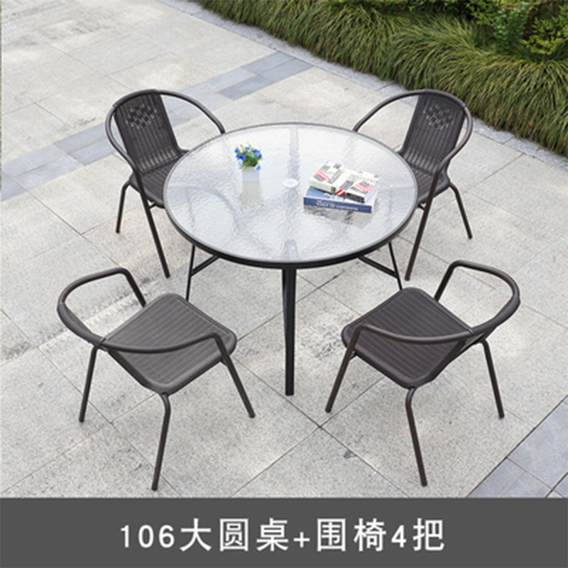 • 106 큰 원형 테이블 + 의자 4 개 + 태양 우산