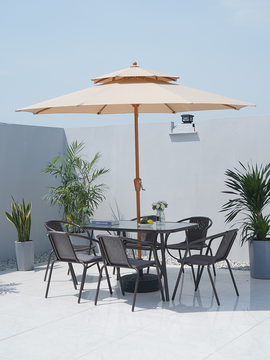 야외 테이블과 의자, 우산이 있는 등나무 의자, 야외 식사, 상업용 매점, 밀크티, 커피, 안뜰, 발코니, 레저, 자외선 차단