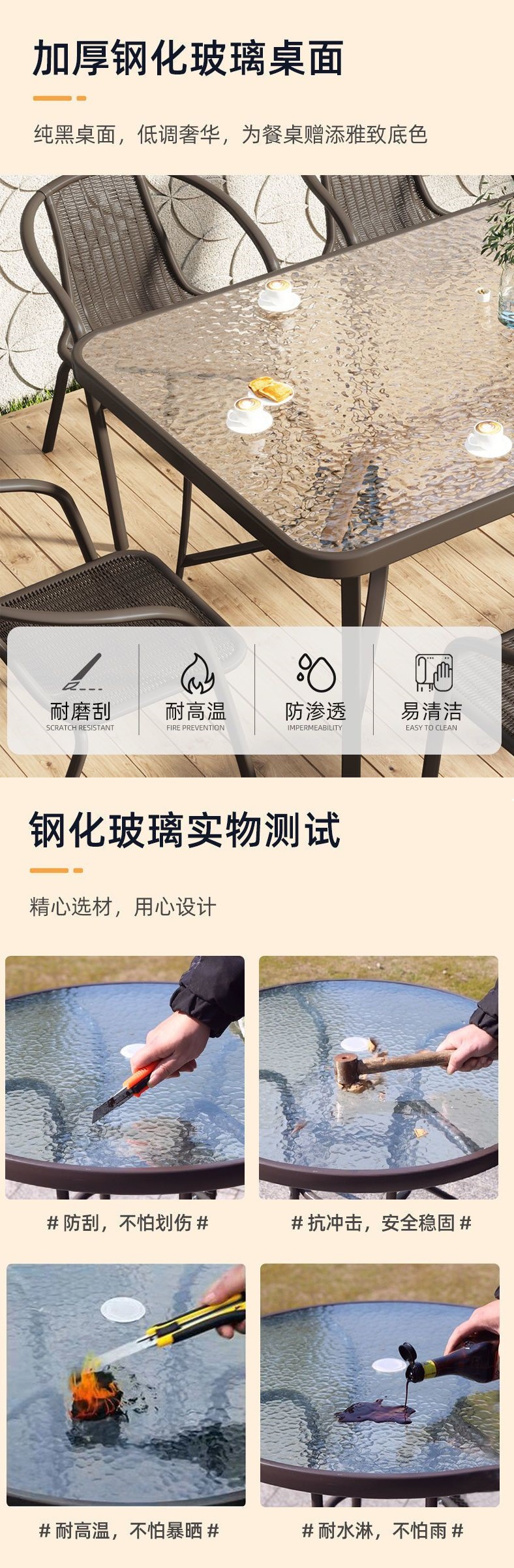 • 워터 패턴 유리 사각 테이블 80 개 + 의자 4 개 + 렌치 우산