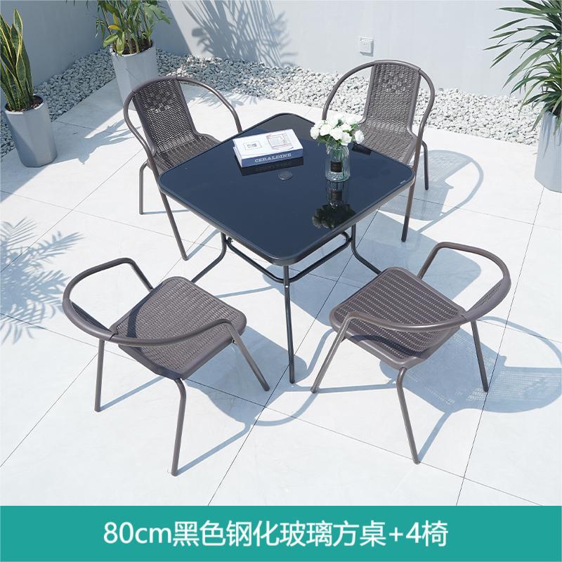 • 검은 유리 사각 테이블 80 개 + 의자 4 개 + 태양 우산
