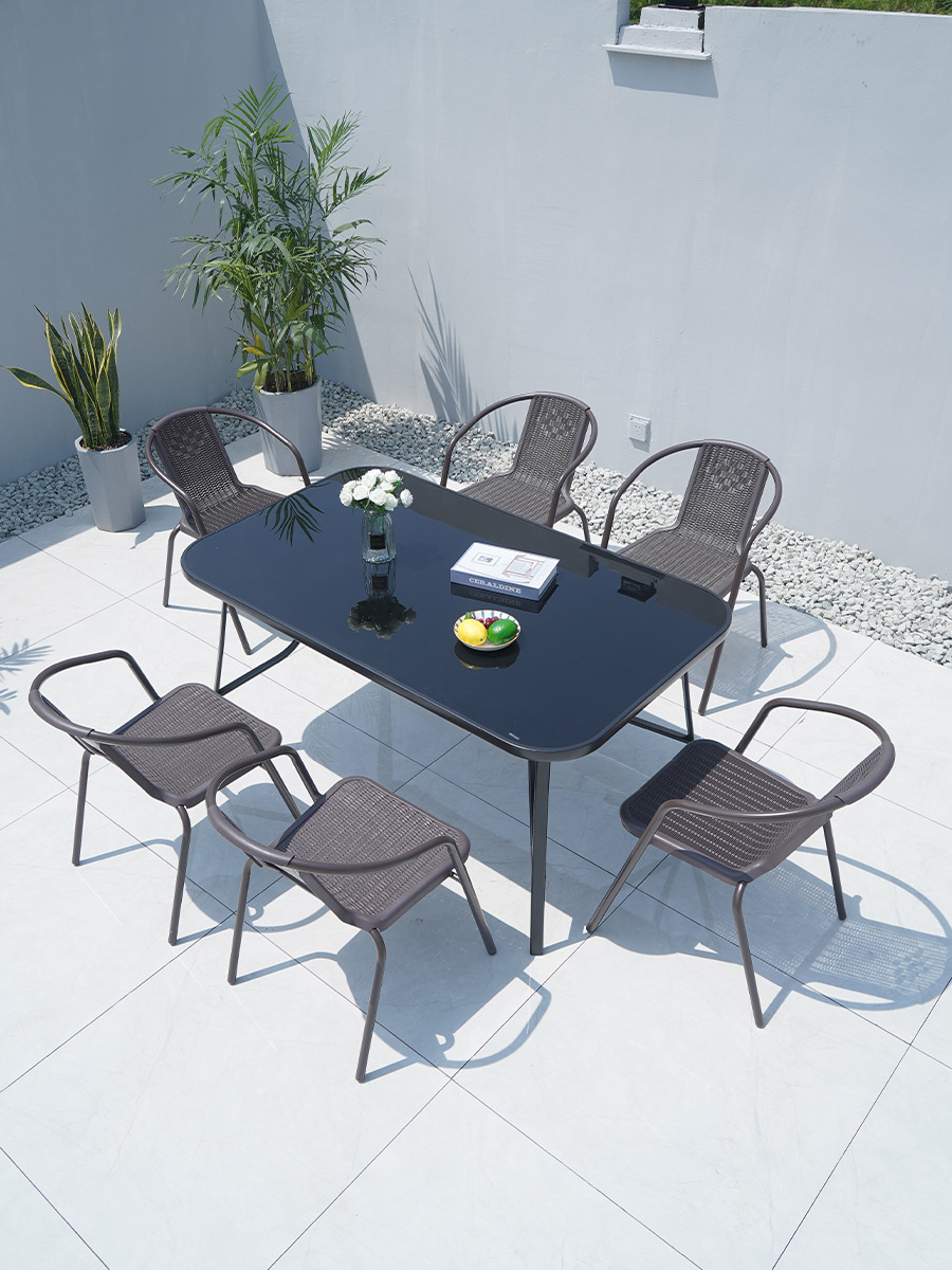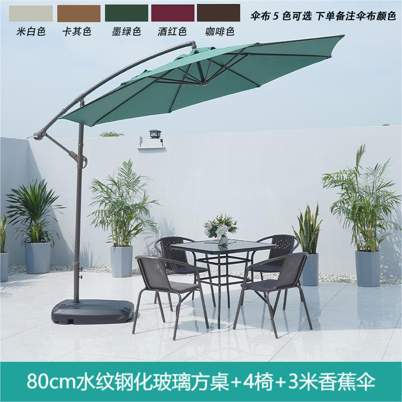 • 워터 패턴 유리 사각 테이블 80 개 + 의자 4 개 + 바나나 우산