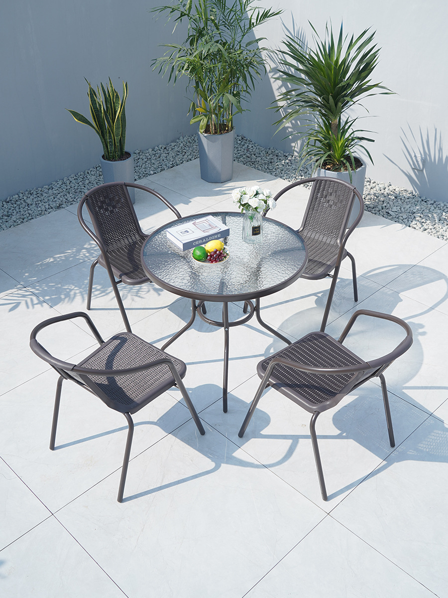 • 물 패턴 유리 원형 테이블 80 개 + 의자 4 개 + 더블 태양 우산