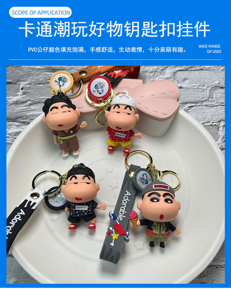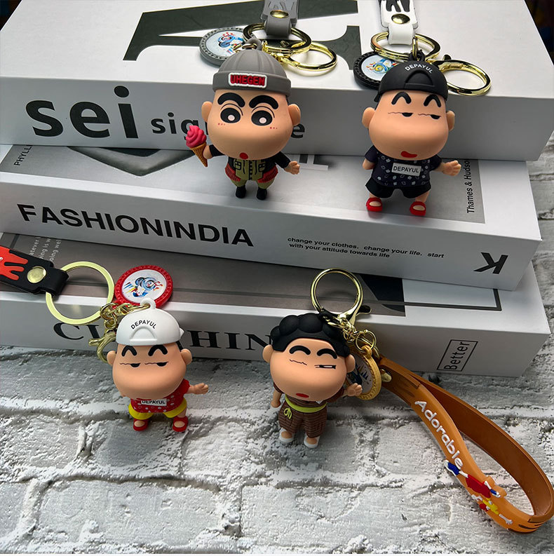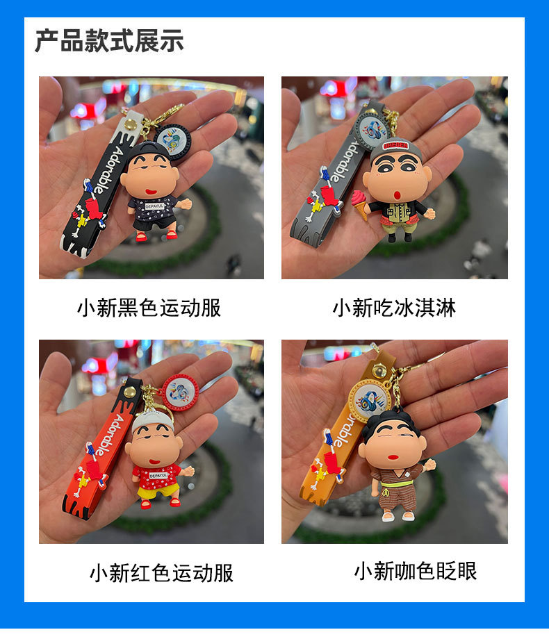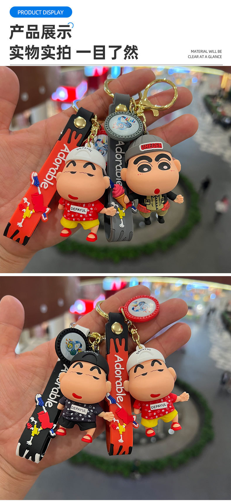 만화 크레용 작은 새로운 열쇠 고리 귀여운 자동차 열쇠 고리 가방 액세서리 인형 기계 펜던트 도매스토어 가기