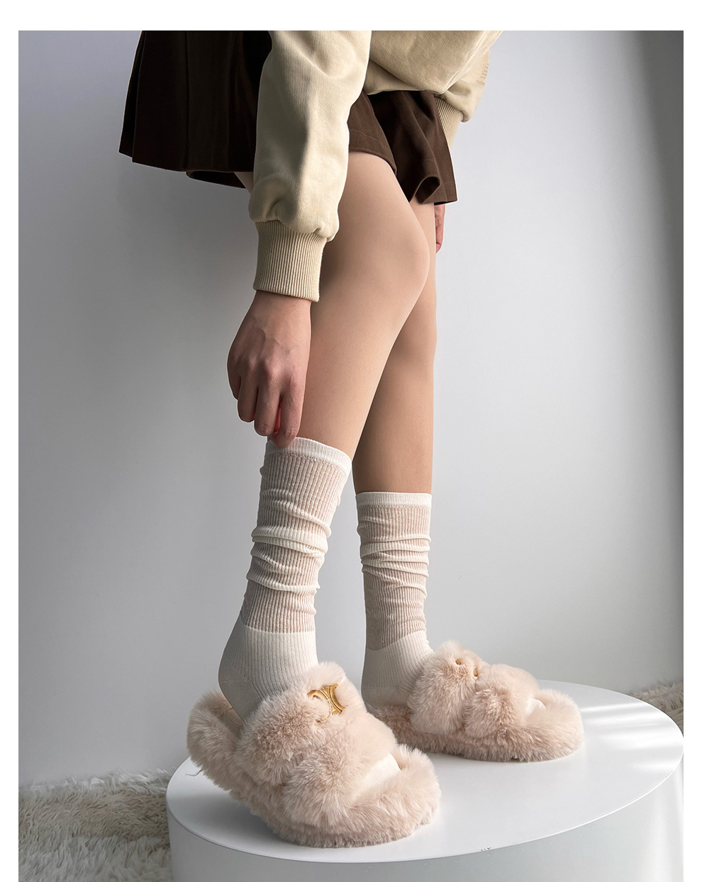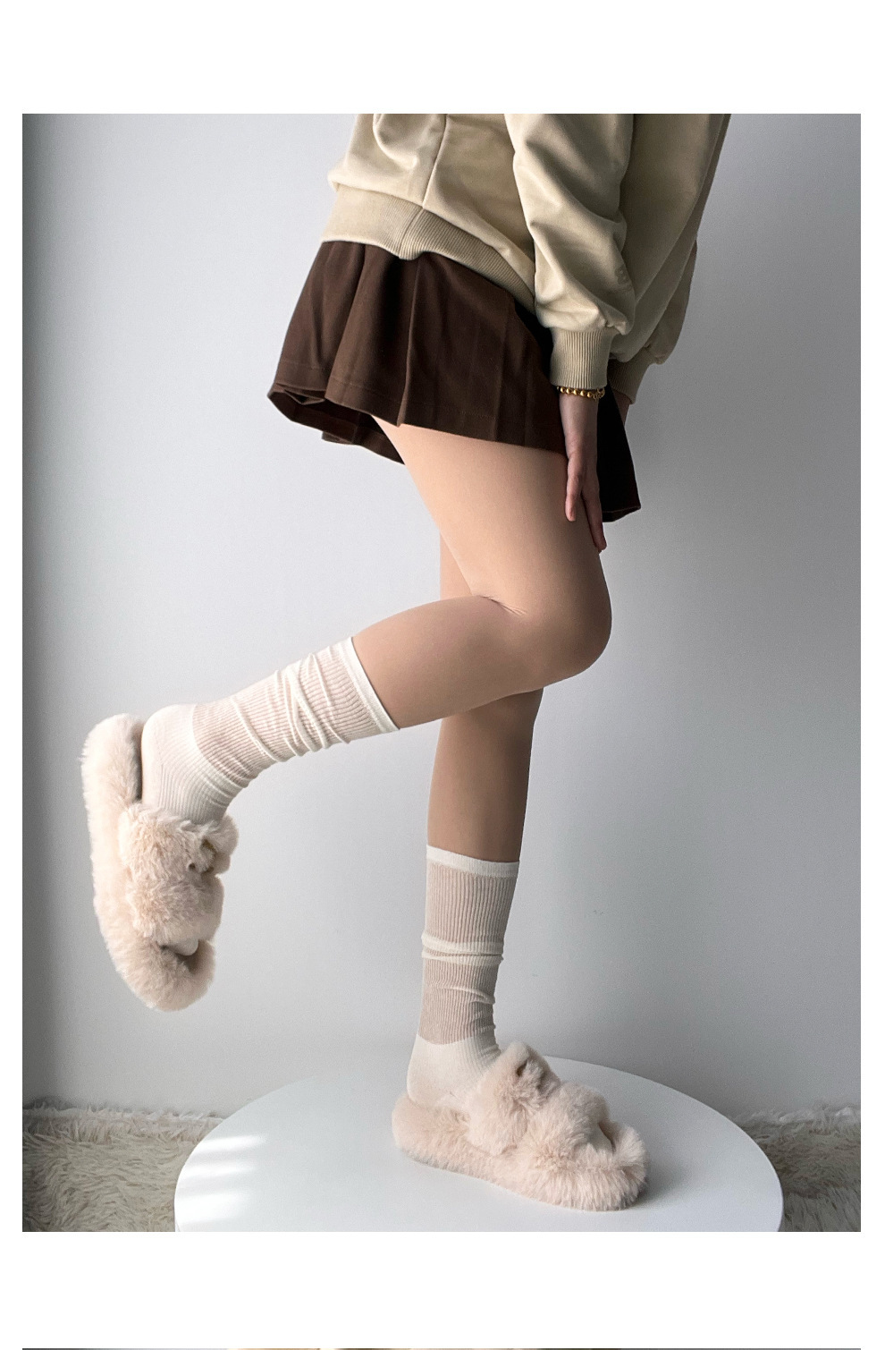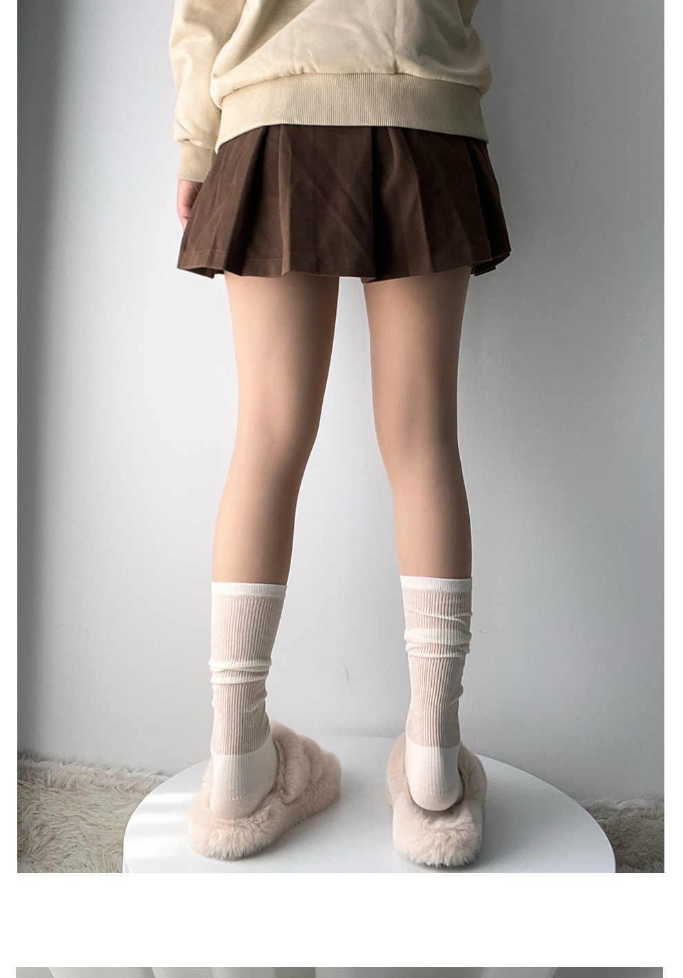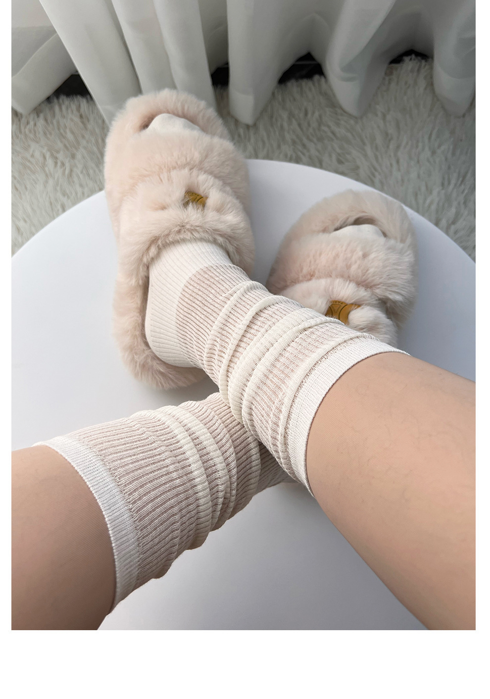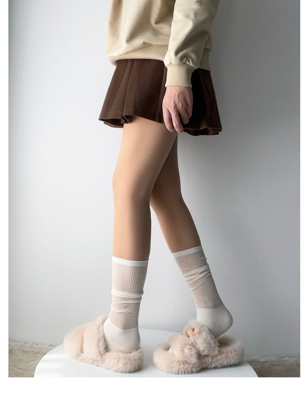 인스타그램 트렌디한 얇은 메쉬 소재의 달콤한 스타일 여성용 패치워크 스타킹, 밀크 화이트 미우 스타일 단색 종아리 양말, 다용도 활용 가능스토어 가기