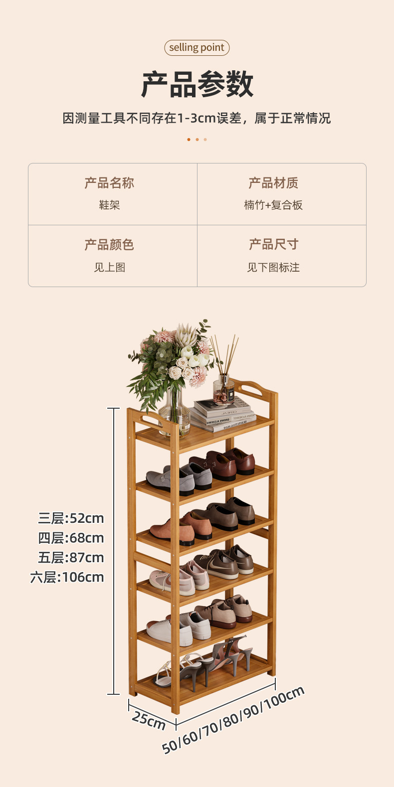 신발장, 간편한 가정용 다층 신발장, 현관 조립형 방진 신발장, 비원목 수납 선반