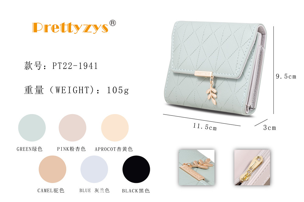 Pruiti 지갑 여성의 새로운 일본과 한국 스타일 작은 신선한 접는 버클 지퍼 짧은 지갑 다기능 동전 지갑