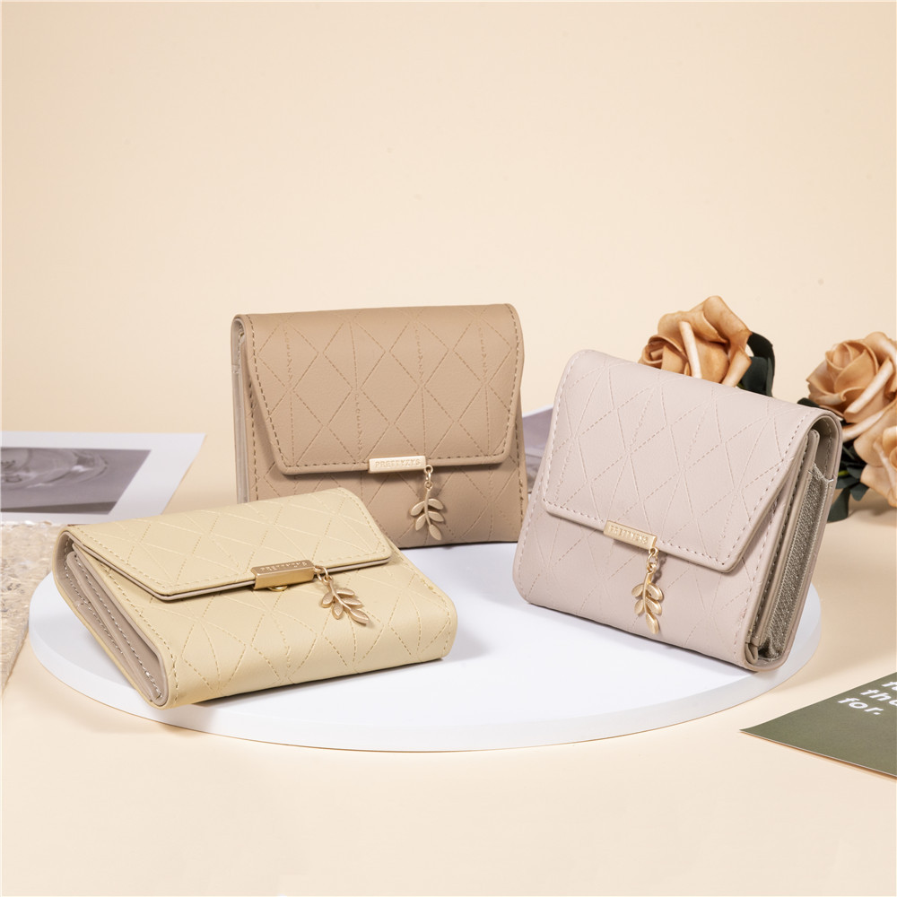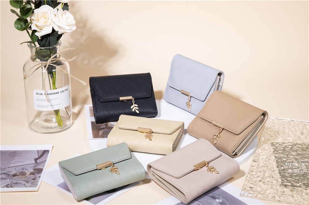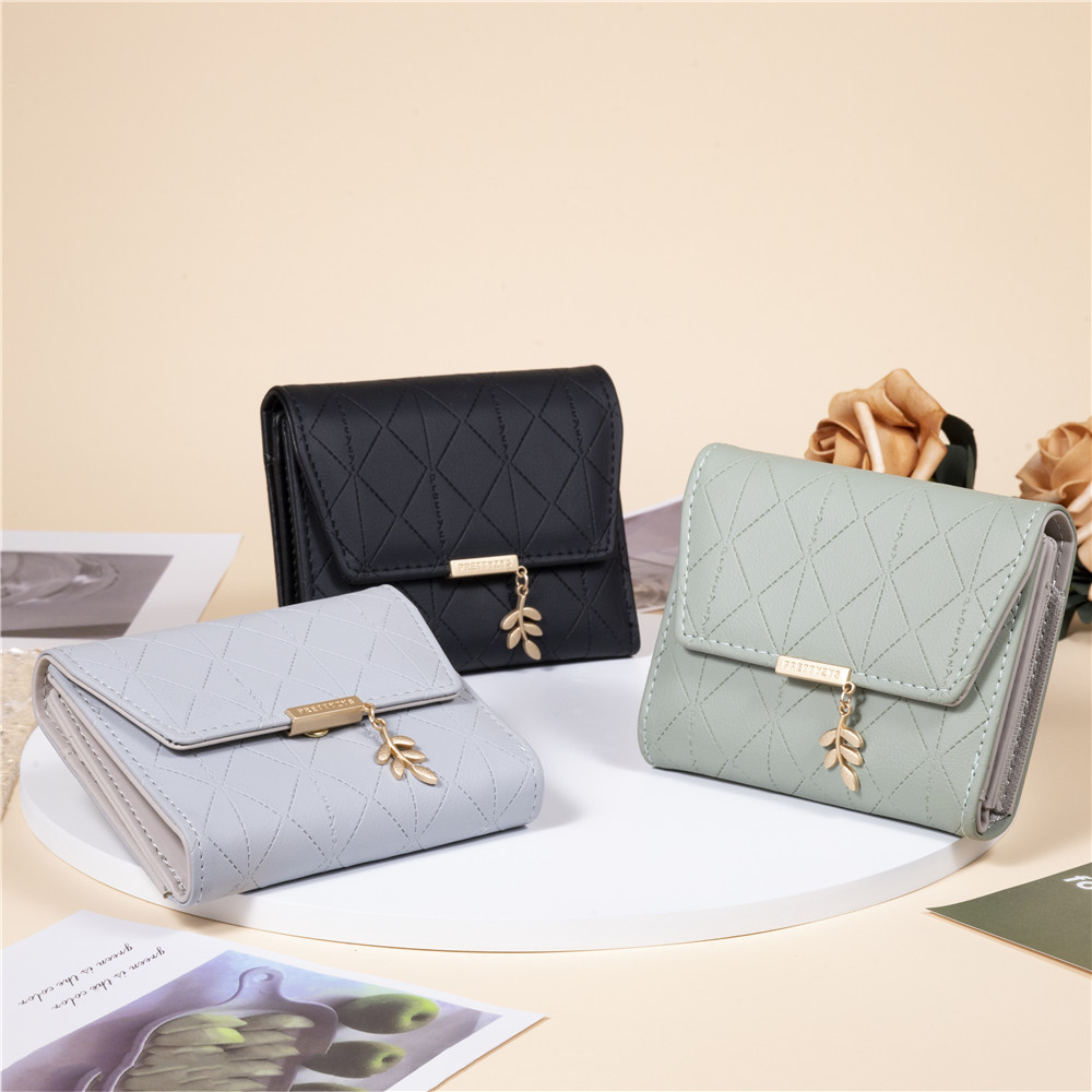 Pruiti 지갑 여성의 새로운 일본과 한국 스타일 작은 신선한 접는 버클 지퍼 짧은 지갑 다기능 동전 지갑스토어 가기