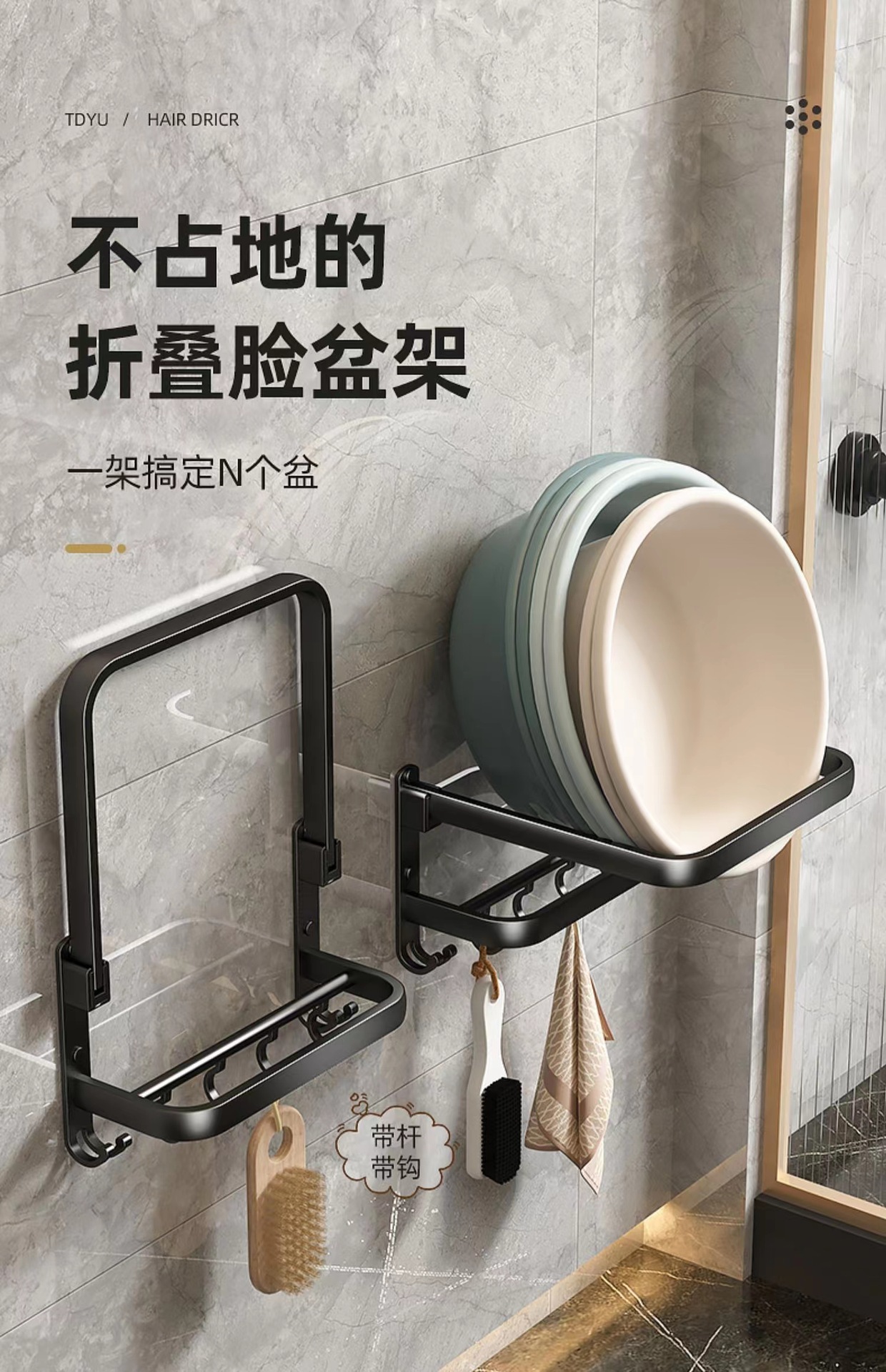• [블랙] 접이식 대야 랙 더블 레이어 벨트 로드