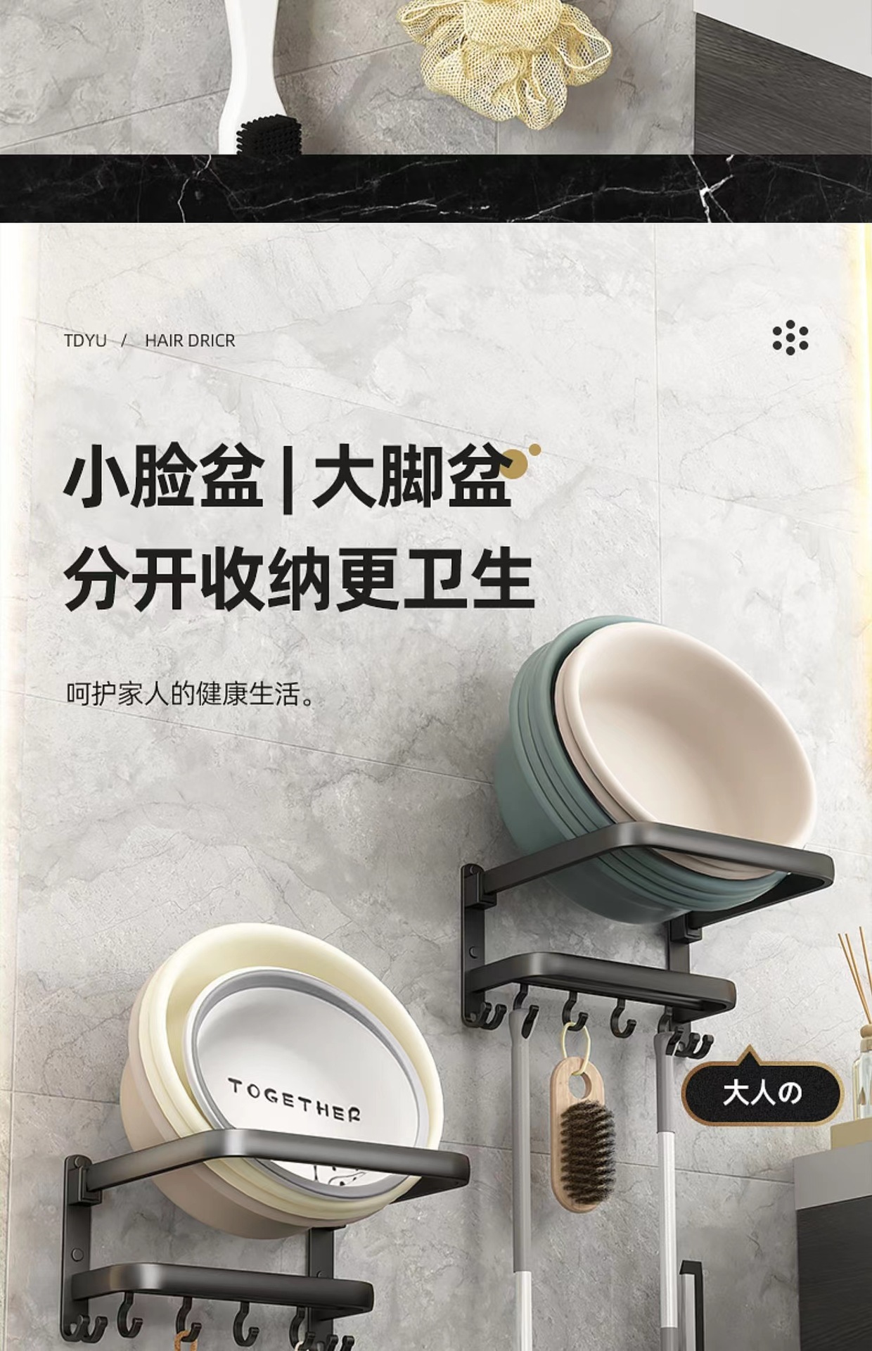 욕실 세면기 보관 랙 펀치 프리 욕실 주방 접이식 벽걸이 세면기 보관 선반