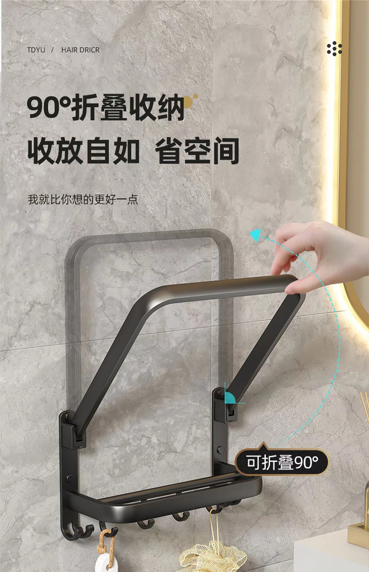 욕실 세면기 보관 랙 펀치 프리 욕실 주방 접이식 벽걸이 세면기 보관 선반스토어 가기