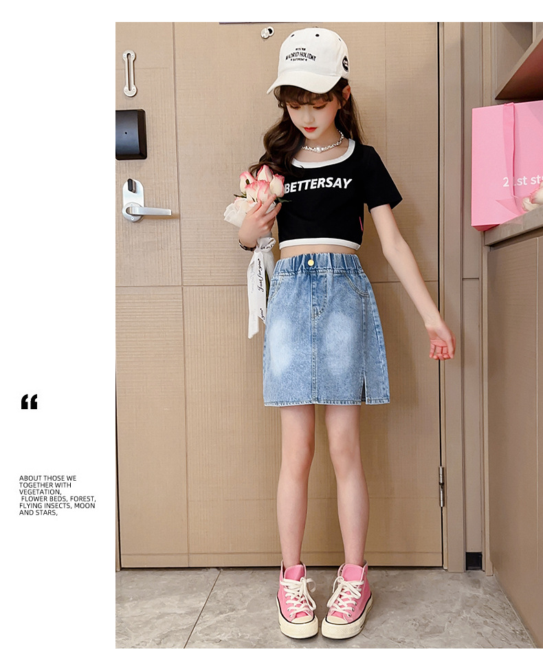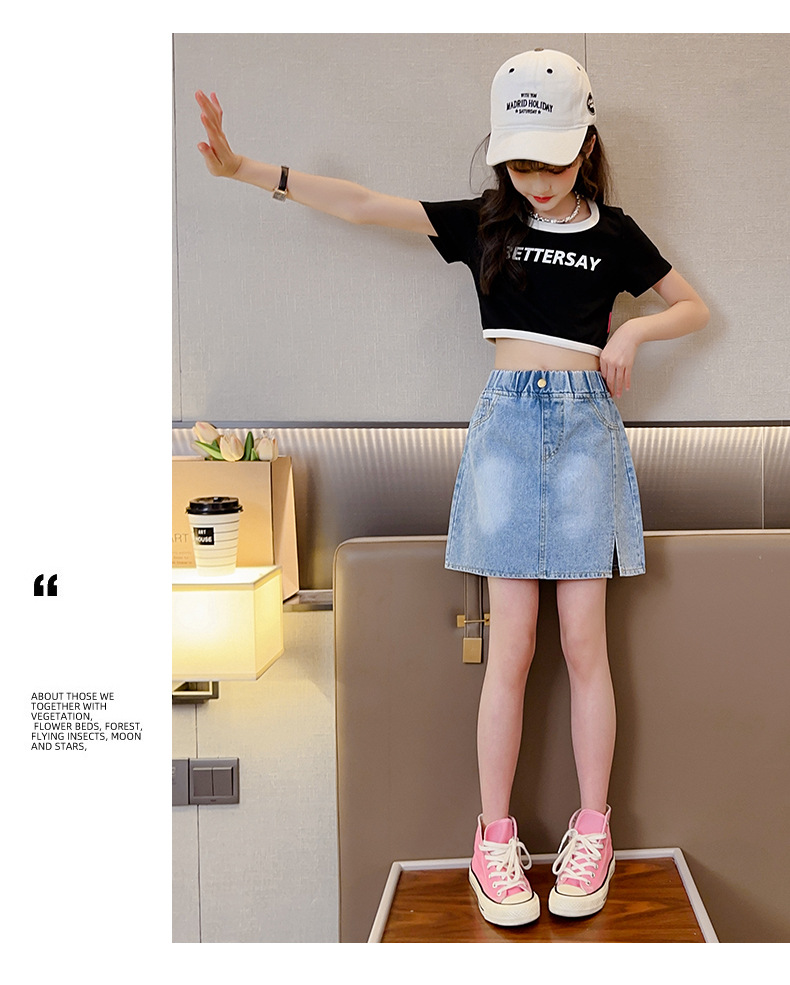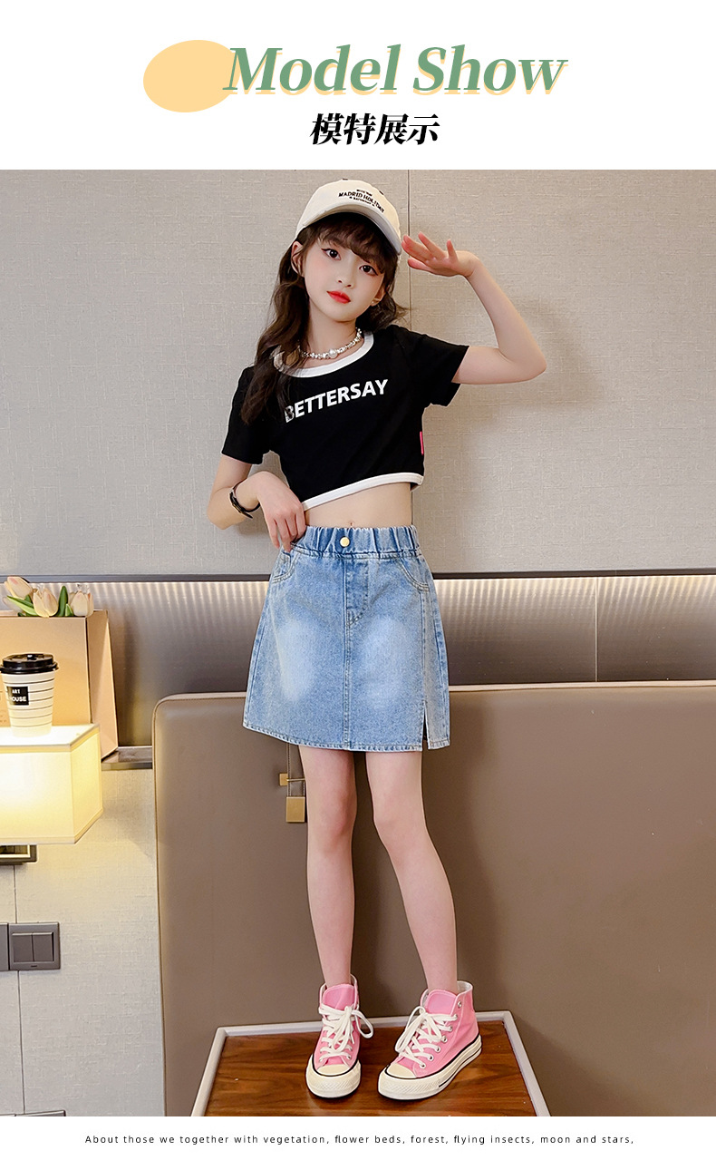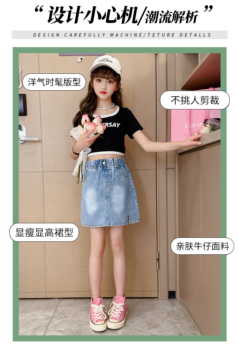 대외 무역 도매 여자 데님 스커트 한국 스타일 서양식 중대형 어린이 짧은 치마 큰 어린이 여름 어린 소녀 스커트
