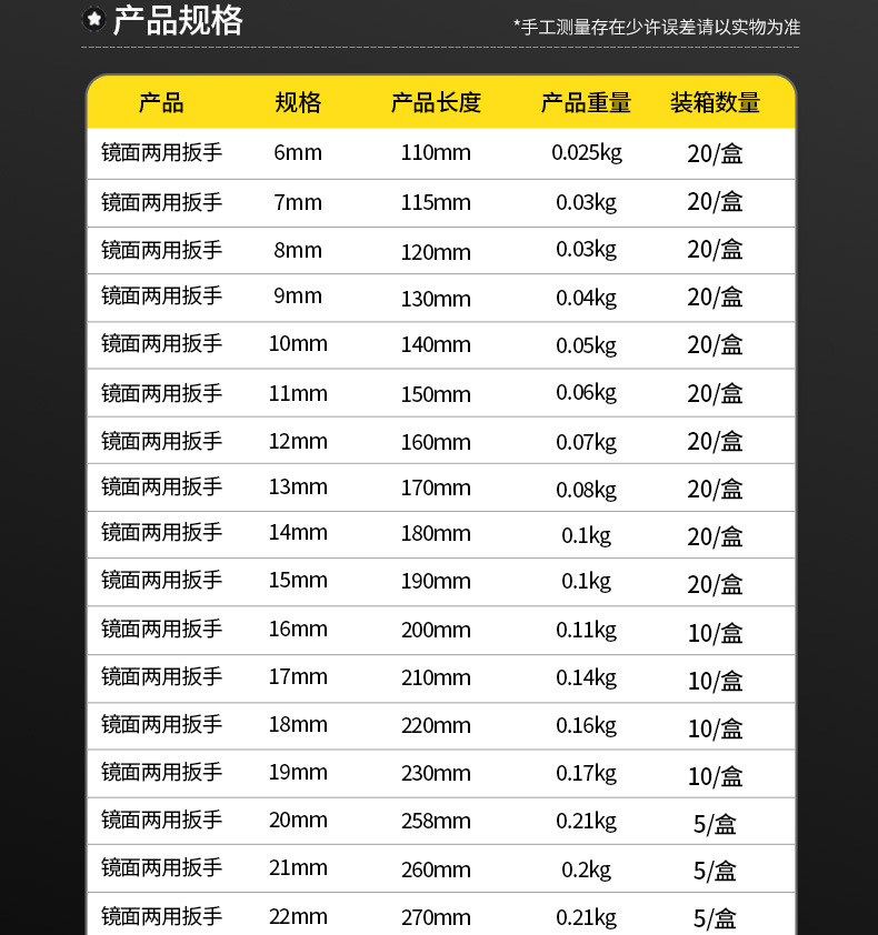 • 19#거울 콤비네이션 렌치, 10개/상자, 160개/개