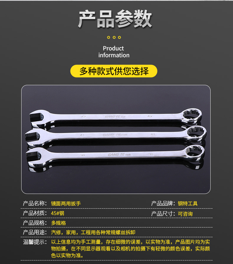 手动扳手两用扳手双头呆梅扳手 Manual tools Manual wrench