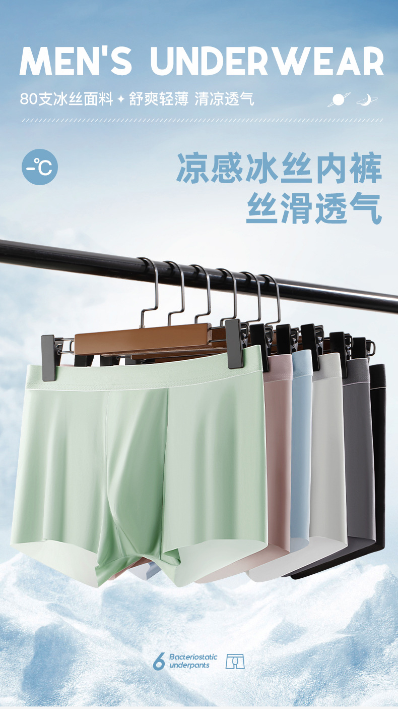 아이스 실크 남성 속옷 얇은 복서 바지 대형 통기성 단색 반바지 머리 항균 크로트 중반 허리 속옷 남성용스토어 가기